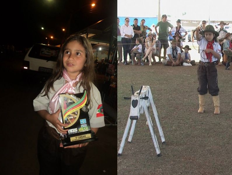 24/07/2013 Com apenas 7 anos a menina Ana Julia Schmidt, moradora de Erval Velho, sagrou-se campeã nacional do Laço Vaca Parada no 16º Rodeio Crioulo Nacional dos Campeões. A competição foi disputada esta semana na cidade de Jataí no Estado de Goiás. Ana Júlia e Samira Piovesam, que também é moradora de Erval Velho, integrararam a comitiva catarinense composta por apenas 7 laçadoras que foram campeãs estaduais. Samira, que já tem o título de campeã estadual, ficou em segundo e Ana Júlia conquistou o troféu na modalidade laço dupla bonequinha. Samira ficou em segundo lugar no laço equipe. A equipe laço vaca parada de Santa Catarina ficou em segundo lugar.