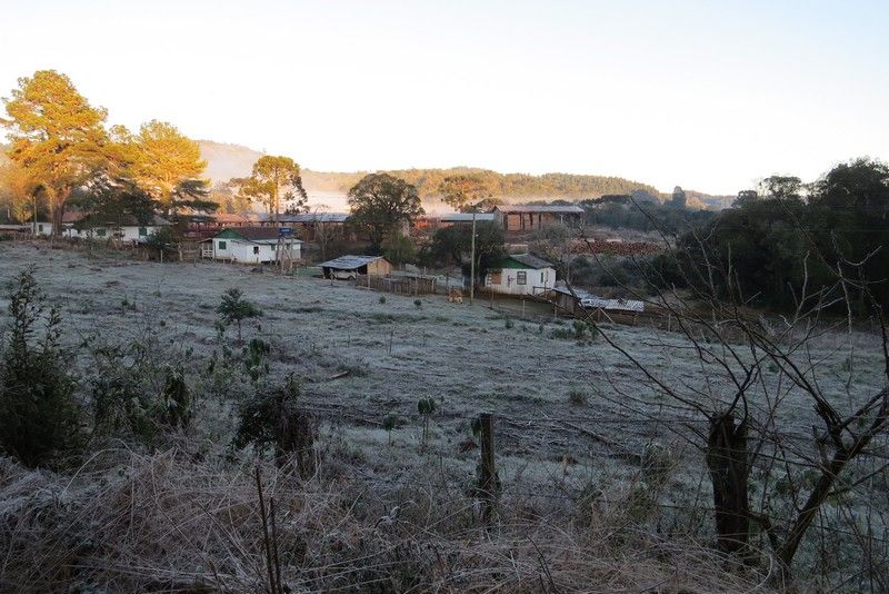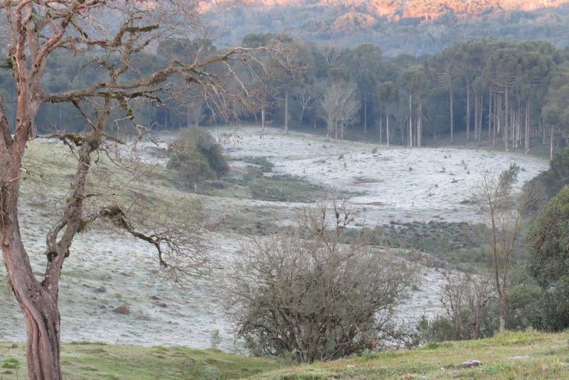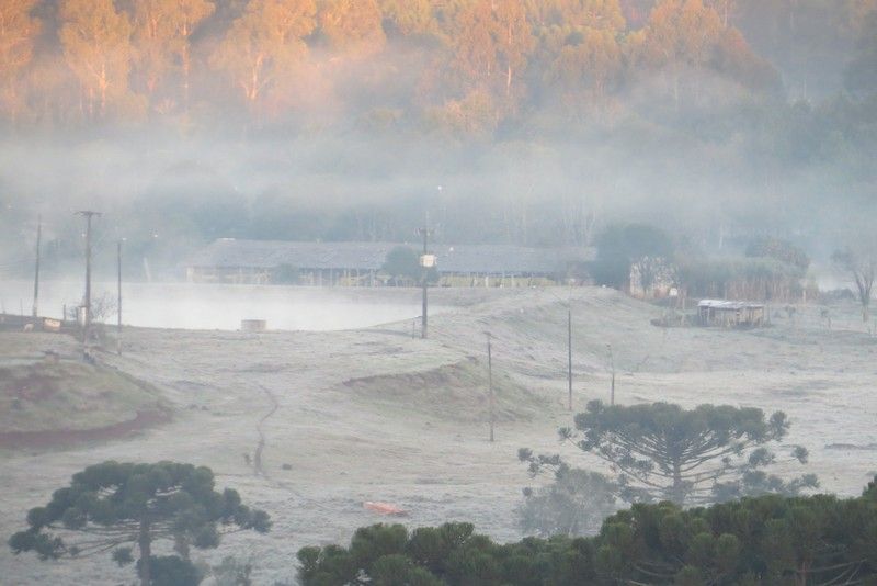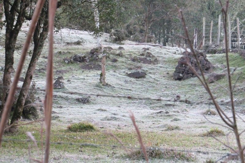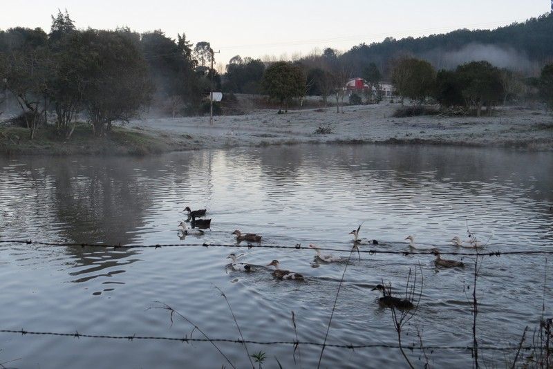 26/07/2013 Novamente os joaçabenses amanheceram com os termômetros registrando baixas temperaturas nesta sexta-feira (26). A onda de frio, que segundo a meteorologia, começa a perder força a partir de hoje, deixou a temperatura em 2ºC entre as 6h e 7h na região do aeroporto municipal Santa Terezinha, fazendo com que os moradores tirassem várias peças do guarda-roupas para sair para o trabalho, apelar para o café quente ou chimarrão e até mesmo se aconchegar ao lado do fogão à lenha. Na madrugada a sensação térmica foi ainda menor. A reportagem da Rádio Catarinense mais uma vez foi conferir a paisagem gerada pela geada, que cobriu os campos de Joaçaba e municípios vizinhos. A massa de ar polar que invadiu o estado no desde o início da semana se tornou histórica. As fotos que ilustram esta matéria foram tiradas nas proximidades do CPJ em Joaçaba. São telhados, campos, árvores. Somente os patos para suportarem temperatura tão baixa para nadar em um lago gélido logo cedo. Entretanto, se o frio castiga as pessoas e animais, por outro lado proporciona um espetáculo natural de única cor, o branco da neve registrada no começo da semana e na sequência das fortes geadas.