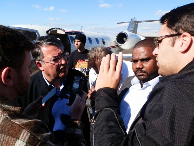 26/07/2013 O governador de Santa Catarina, Raimundo Colombo, passou por Joaçaba nesta quinta-feira (25). Ele esteve em Chapecó assinando ordem de serviço para obras de ampliação no Hospital Regional do Oeste. Em seguida, voou em direção a Joaçaba para em seguida visitar municípios de abrangência da SDR de Campos Novos. Na chegada ao aeroporto Santa Terezinha, o governador Raimundo Colombo concedeu entrevista a Rádio Catarinense e falou que está cumprindo agenda para atingir a meta de visitar os 295 municípios catarinenses.