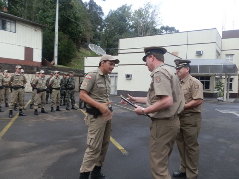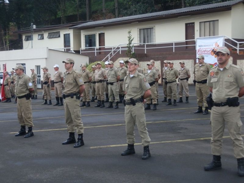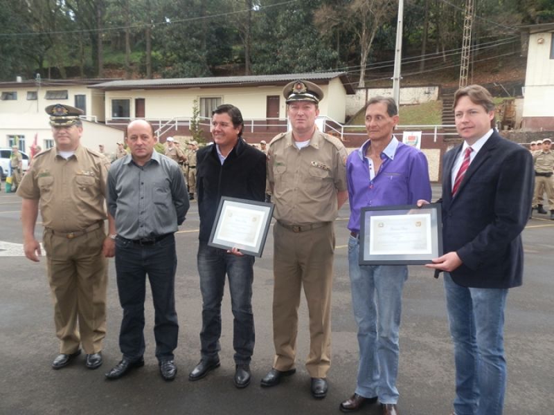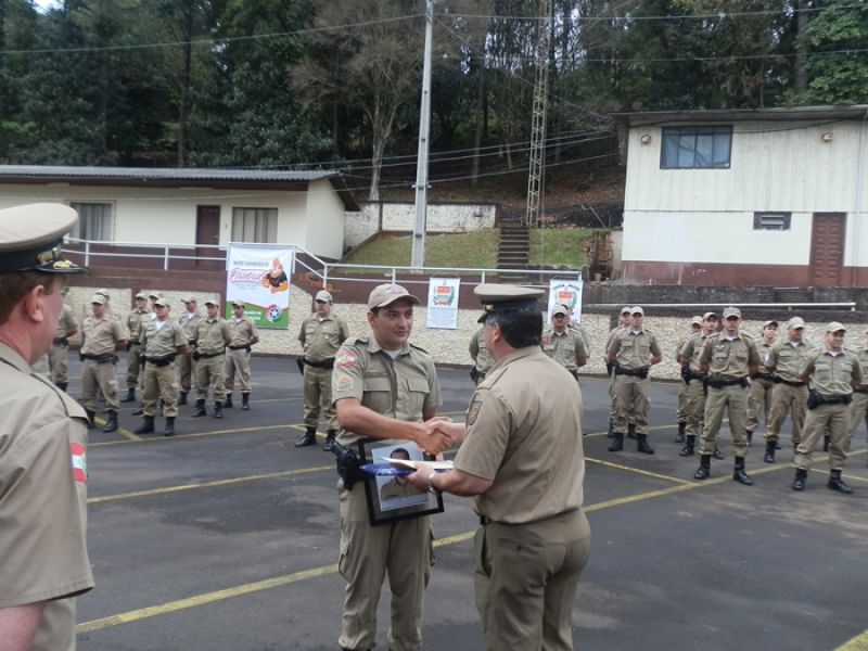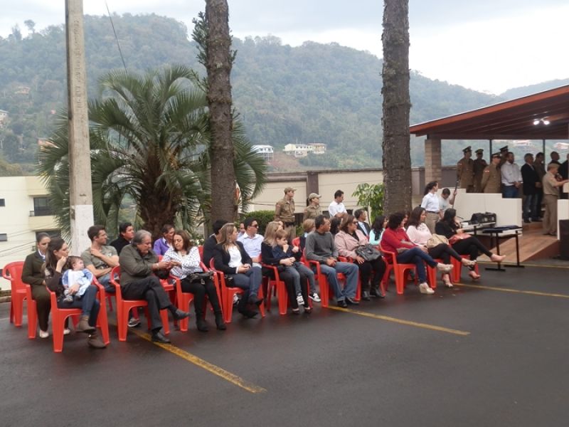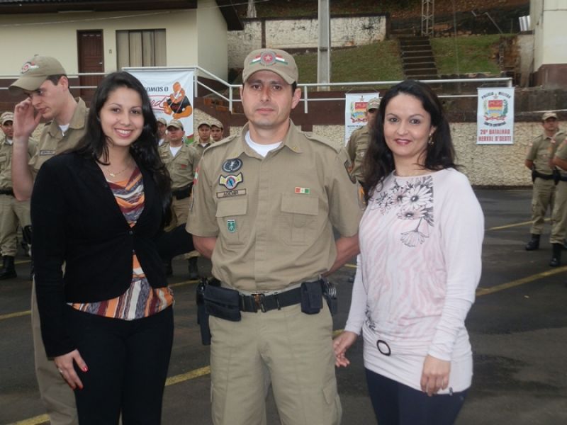 09/08/2013 Aconteceu nesta sexta-feira (09) a solenidade de promoção de Oficiais e Praças do 26º Batalhão de Polícia Militar. O evento iniciou às 11 horas na sede do batalhão em Herval d’ Oeste. Foram promovidos três oficiais e quatro soldados. Conforme o comandante da 10ª Região de Polícia Militar, Coronel Turíbio Skonieczny, a promoção foi de segundo-tenente a primeiro-tenente e de soldados a cabos. São levados em considerações os critérios de tempo de serviço e desempenho na corporação, avaliação de conduta e méritos pessoais. Ele explica que o dia 11 de agosto, aniversário de Santa Catarina, é uma das datas-magnas para a PM, porém, como será neste domingo a solenidade foi antecipada. “Para nós é uma satisfação a promoção deles, são pessoas especiais, excepcionais que fazem um diferencial muito grande para a nossa região Meio Oeste catarinense”, enaltece.