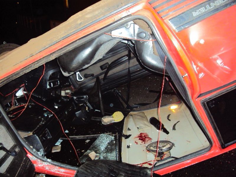 23/08/2013 A Polícia Militar foi informada por volta das 3h30 desta sexta-feira (23) de um acidente na rua Senador Euzébio, centro de Herval d’ Oeste. No local os policiais constataram que se tratava de uma colisão seguida de capotamento com feridos. O veículo VW/Passat com placas MBE-0459 de Herval d’ Oeste, conduzido por um homem de 31 anos, se chocou contra um Renault Clio com placas MGX-8774 de Herval d’ Oeste que estava estacionado, de propriedade de uma mulher de 32 anos. O Passat ainda atingiu a residência de uma mulher de 62 anos. A PM verificou que o motorista do Passat estava com a carteira de habilitação vencida há mais de 30 dias, além de embriagado. O teste do bafômetro acusou 1,07mg/l de ar expelido. No veículo estava na carona uma mulher de 24 anos que foi conduzida em estado grave ao Hospital Universitário Santa Terezinha de Joaçaba. O veículo foi recolhido e feitas as notificações. O condutor do Passat foi preso e conduzido à Delegacia de Polícia onde foi autuado em flagrante.