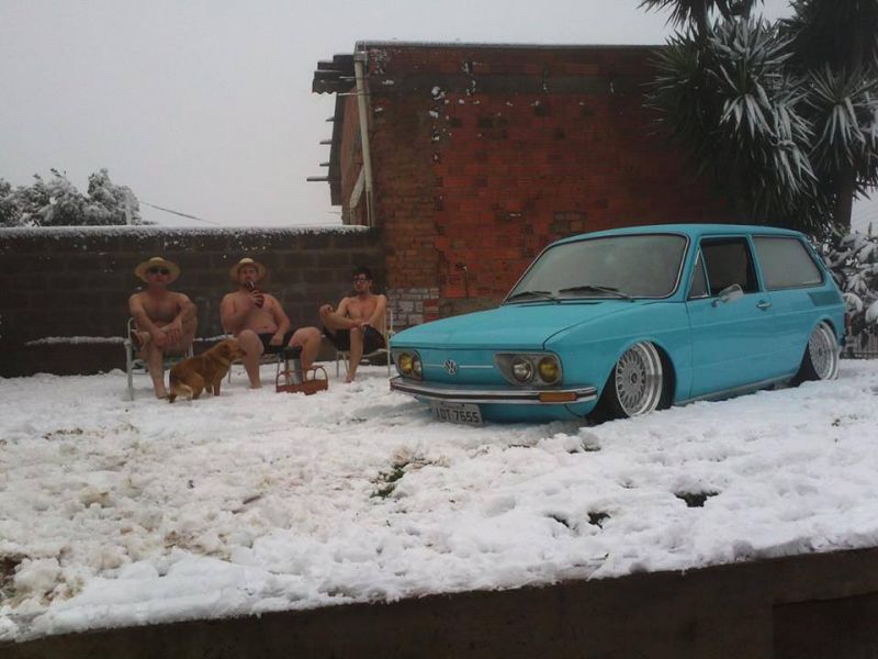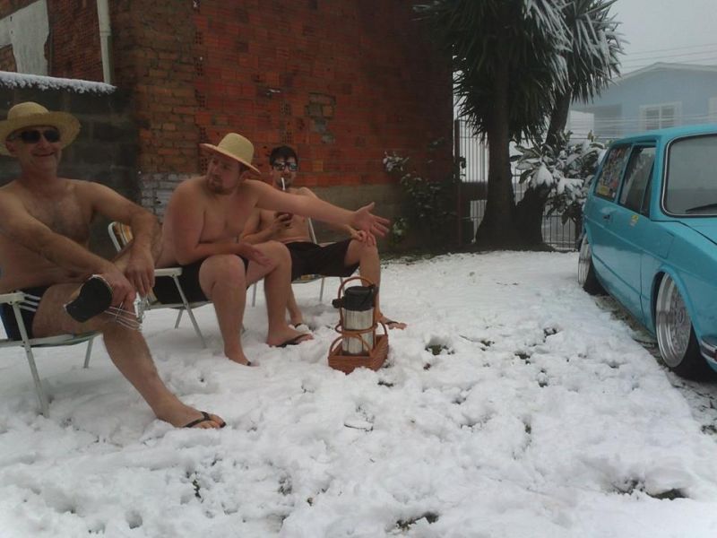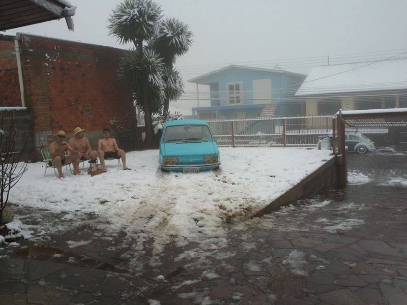 Em Caxias do Sul as paisagens ficaram brancas e inspiraram os moradores. Anderson Honnef publicou no Facebook uma foto tirando onda do frio. Ele e outros dois amigos aparecem sentados em cadeiras de praia tomando um chimarrão, sem camisas e usando bermudas e sunga. A foto teve muita repercussão pela criatividade.