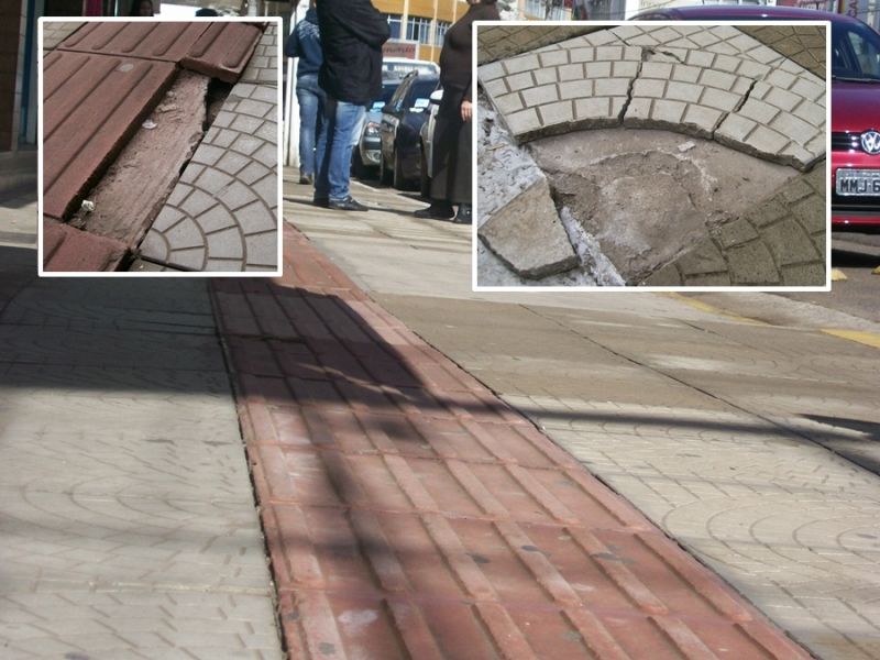 28/08/2013 A recuperação do passeio público na área central de Joaçaba, viabilizado através do projeto “Calçada Cidadã”, já está apresentando problemas em diversos pontos. Após receber algumas reclamações a reportagem da Rádio Catarinense constatou “in loco” a situação no trecho entre a loja Lorenci e a Praça Adolfo Konder. Neste trajeto percorrido pela nossa reportagem foram verificadas diversas imperfeições. São lajotas quebradas, soltas, que destoam de cor, pontos que estão sem lajotas, desnível, guias para deficientes visuais que levam o pedestre a se chocar com placas de sinalização, enfim, problemas que começam a aparecer com menos de um ano de recuperação. Enquanto outras etapas são autorizadas pela prefeitura, as que foram feitas anteriormente já necessitam de reparos. Resta saber agora quais serão as providências tomadas pelo poder público que contratou a obra.
