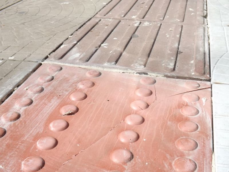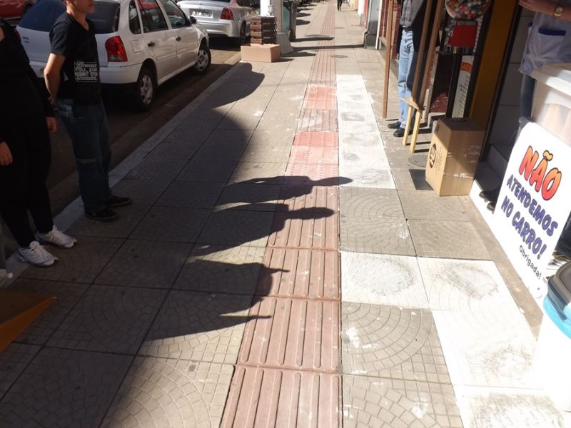 Outro detalhe que chamou atenção da reportagem da Rádio Catarinense é o piso tátil, um grande aliado das pessoas com deficiência visual e baixa visão. A sinalização tátil no piso pode ser de dois tipos: de alerta ou direcional. O de alerta, conhecido pelo formato de "bolinhas", tem como função alertar a pessoa com deficiência de que, à frente, há algum obstáculo, uma escada, uma rampa, a porta de um elevador, o rebaixamento de uma calçada ou um desnível, como uma plataforma de embarque e desembarque. Já a sinalização direcional, que tem linhas verticais, serve para orientar o trajeto e deve ser usada em áreas de circulação. A aplicação deve indicar o caminho a ser percorrido, funcionando como uma trilha. Em frente ao prédio da Rádio Catarinense a empresa misturou os dois tipos de pisos, o que pode gerar confusão para os deficientes visuais.