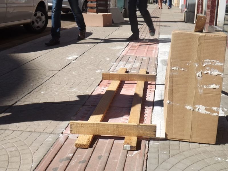 29/08/2013 A construtora , que venceu uma das etapas da licitação do projeto “Calçada Cidadã” em Joaçaba foi notificada pela prefeitura e está refazendo o serviço no trecho entre a loja Lorenci e a praça Adolfo Konder. O trabalho foi iniciado ontem e prevê a substituição das lajotas que apresentaram problemas, conforme apontado pela reportagem da Rádio Catarinense. Mas a recuperação, determinada pela prefeitura, está deixando a desejar. No início da tarde desta quinta-feira (29), logo após a recolocação das lajotas, em frente ao prédio da Rádio Catarinense, flagramos novamente o serviço mal feito. As lajotas foram colocadas sem nenhuma proteção, para que a argamassa secasse, e muitas delas já quebraram novamente já que os pedestres que passam pelo local acabam pisando em cima, justamente pela falta de proteção. A única proteção, que cobre 3 lajotas, foi colocada por um comerciante que ficou preocupado com a situação.