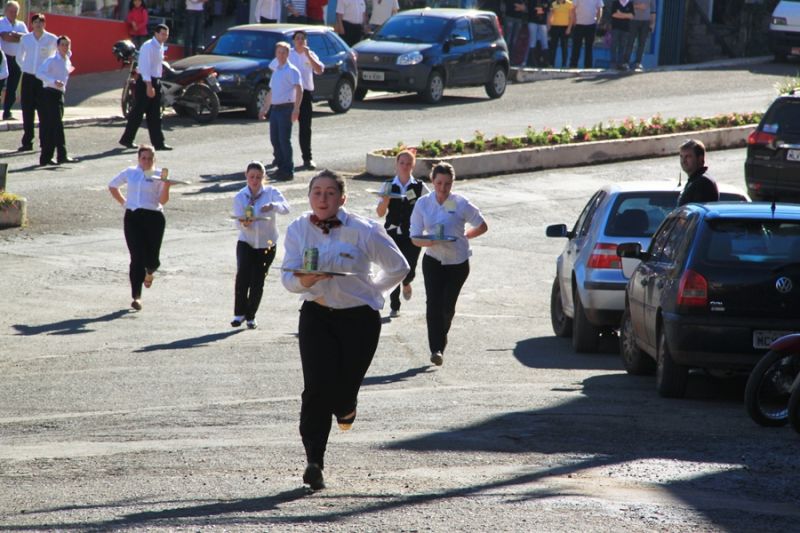 30/08/2013 Garçons e garçonetes deixaram os restaurantes de lado e foram para a Avenida 18 de Fevereiro, pista da quarta edição da corrida em Piratuba. O evento contou com a participação de cerca de 50 “atletas”, divididos em 15 equipes. O Hotel Vila Germânica foi o campeão e o Hotel Paraíso ficou com o 2º e o 3º lugar.