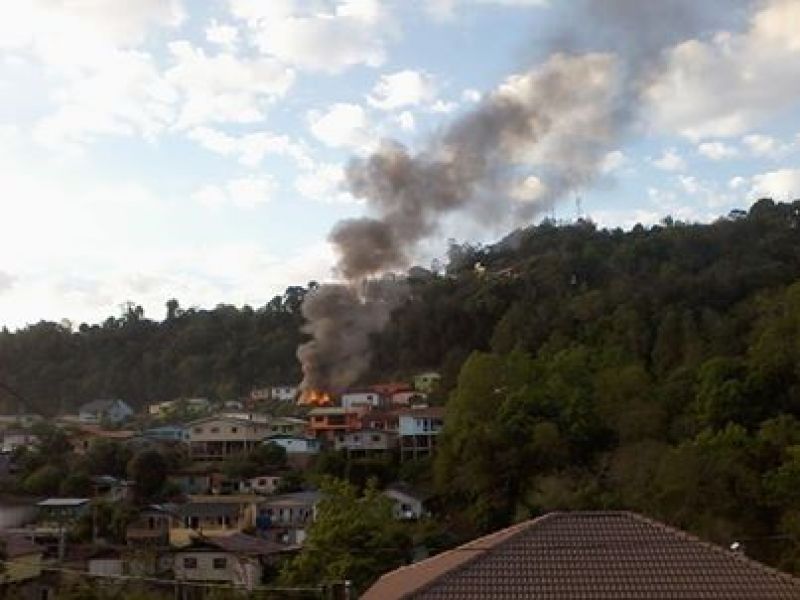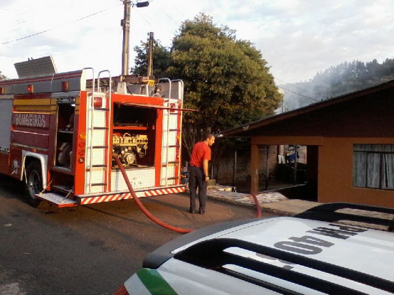 13/09/2013 O Corpo de Bombeiros combate incêndio em residência na rua Luiz Paulino, bairro Vila Rica em Herval d' Oeste. A reportagem da Rádio Catarinense foi informada no local por vizinhos que os proprietários estavam trabalhando no momento do sinistro. O imóvel - que integra uma casa geminada e fica nos fundos da rua - foi destruído pelo fogo. Populares tentaram inicialmente conter o fogo com mangueiras de jardim, mas rapidamente o fogo se alastrou. Dois caminhões de combate a incêndio foram deslocados para controlar as chamas. Uma idosa de 70 anos e uma criança de 8 anos estavam no imóvel. Eles conseguiram sair a tempo com ajuda dos vizinhos. O calor intenso acabou danificando partes das casas ao lado. Com o rescaldo os prejuízos não foram maiores. O incêndio iniciou por volta das 17h30. As causas do sinistro deverão ser apontadas em perícia do Corpo de Bombeiros. A proprietária da casa é Adriana Domingos Piaia.