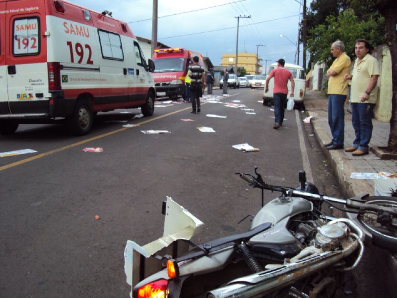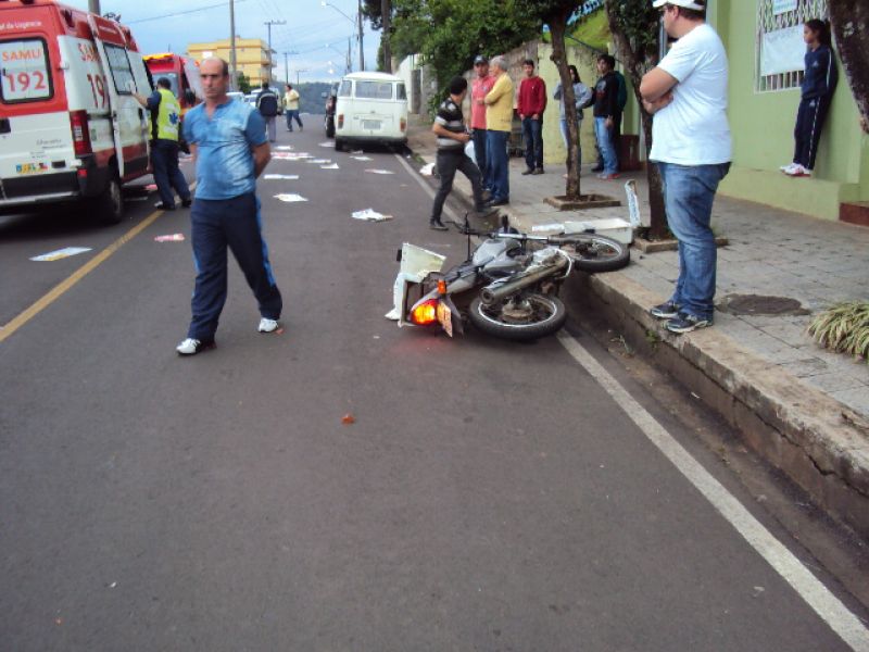 20/09/2013 Um acidente com vítima foi registrado por volta das 16h30 desta sexta-feira (20) na rua Rui Barbosa em Herval d' Oeste. A colisão envolveu um Renault Clio placas MIH-0387 de Herval d' Oeste que tinha como condutor M.T.B, de 63 anos. Ele colidiu na motocicleta Honda CG-150 placa MFG-0133 de Herval d' oeste, conduzida por MFM, de 20 anos. A vítima apresentava suspeita de fratura no joelho direito. A Polícia Militar fez o teste do bafômetro que acusou embriaguez do motorista do carro. Ele foi preso em flagrante e levado à Delegacia de Polícia de Herval. Segundo a PM a moto parou a uma distância de 23 metros de onde ocorreu o choque. Após ouvir o motorista, o delegado Deivid Tranche Lima entendeu que o condutor infringiu dois crimes de trânsito, dirigir embriagado e lesão corporal na direção de veículo. O delegado entendeu não caber fiança nesse caso e determinou a condução do motorista ao Presídio Regional de Joaçaba.
