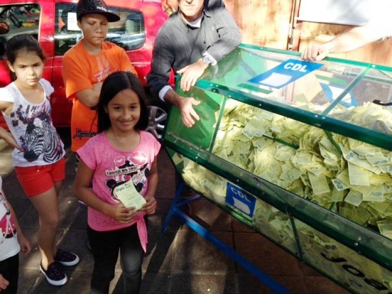 07/10/2013 A Câmara de Dirigentes Lojistas de Joaçaba (CDL), em parceria com a empresa Raízes Diário, realizou neste sábado (05) mais um sorteio da promoção “Joaçaba Um Grande Shopping a Céu Aberto”. Desta vez foram sorteados quatro vale compras no valor de R$ 250,00. Os consumidores acompanharam o sorteio que foi realizado ao vivo na Praça Adolfo Konder, em frente a prefeitura.