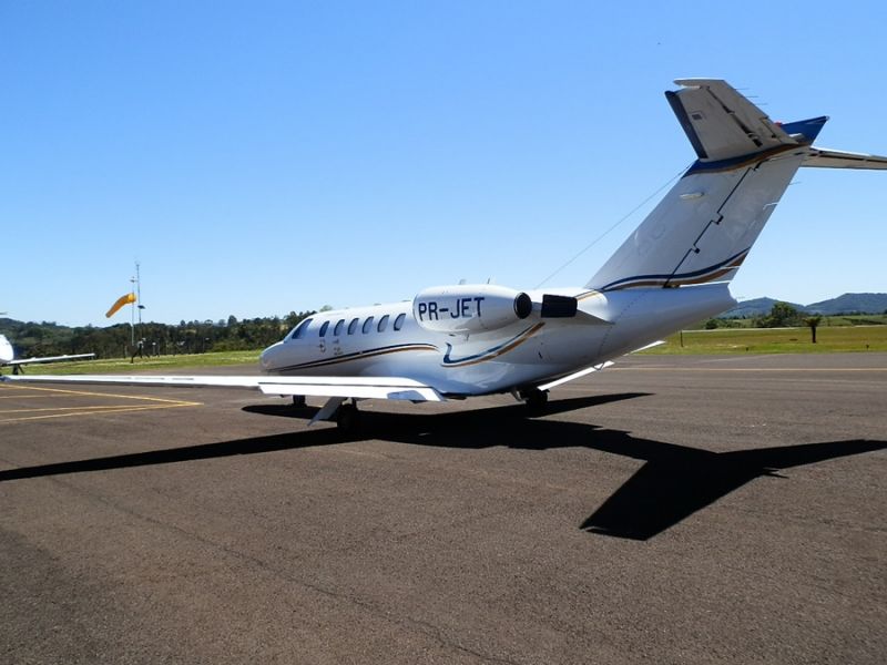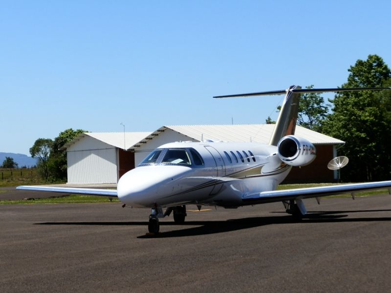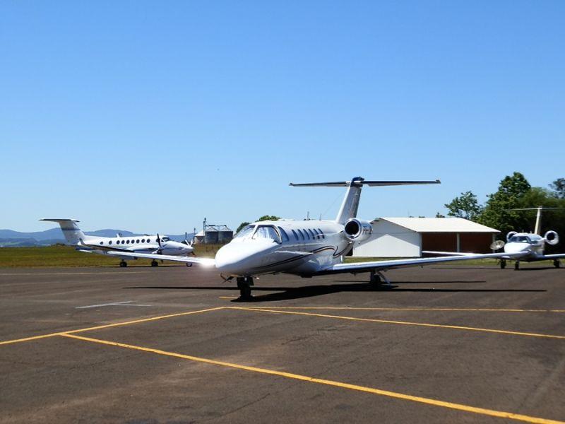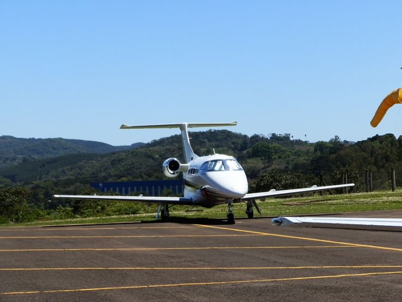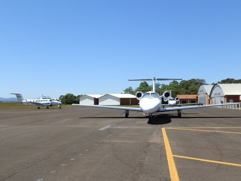 08/10/2013 A terça-feira (08) foi movimentada no Aeroporto Santa Terezinha de Joaçaba. Quatro jatos particulares desceram na pista no início da manhã. Dos jatos trouxeram um grupo de empresários Americanos que vierem conhecer a Celulose Irani em Vargem Bonita. Um terceiro trouxe empresários e diretores da ADM e o quarto um homem que veio a Joaçaba com fins particulares.