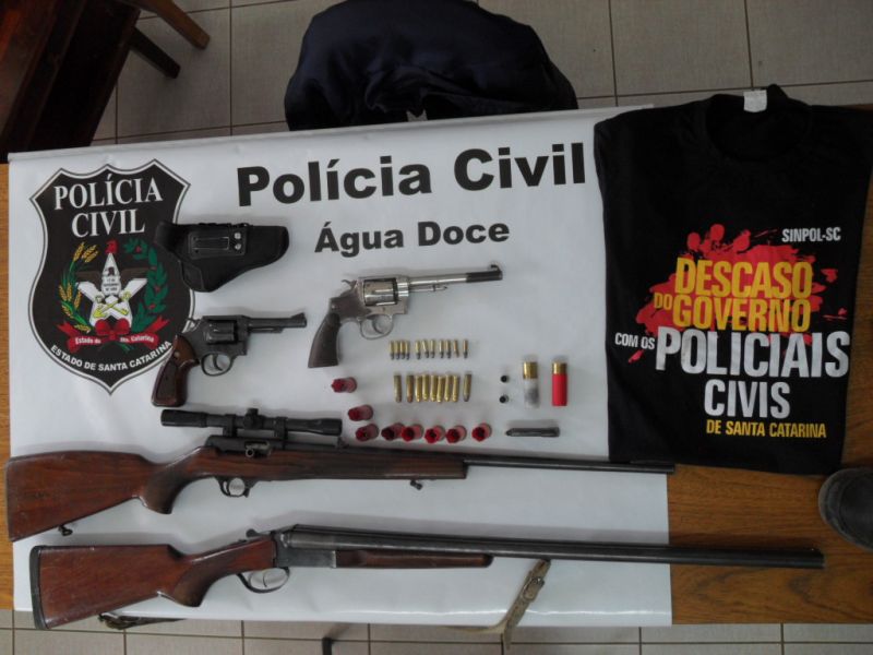 11/10/2013 A Polícia Civil prendeu na tarde sexta-feira (11) quatro pessoas em Água Doce. Entre os detidos estão dois foragidos do presídio de Maravilha, no Oeste. De acordo com o delegado Bruno Boaventura, os policiais receberam a informação na noite desta quinta-feira de que dois foragidos do presídio de Maravilha estariam escondidos nos assentamentos de Vargem Bonita e de Água Doce. Nesta sexta pela manhã a equipe comandada por Boaventura saiu em busca dos foragidos. Foram percorridos cerca de 150km dentro dos assentamentos até que foram localizados os dois foragidos que cumpriam pena por homicídio e tentativa de homicídio. A dupla havia fugido com mais três detentos, sendo que esses três já haviam sido recapturados. Eles são considerados de alta periculosidade segundo as informações repassadas pelos policiais de Maravilha. Durante a prisão de Adriano dos Santos e Cristiano Maciel a Polícia Civil prendeu mais dois suspeitos armados. Os quatro foram levados para a Delegacia de Água Doce. Os foragidos serão recambiados para Maravilha. Na abordagem os dois procurados foram imediatamente identificados, mediante fotografias. Com o quarteto foram apreendidos dois revólveres e duas espingardas. Os foragidos são suspeitos de terem cometidos crimes na região de Joaçaba. Eles estariam há 11 meses escondidos nos assentamentos, inclusive um dos suspeitos teria se envolvido em briga com moradores. A polícia vai investigar se eles podem ter ligação com os recentes furtos de automóveis ou algum outro crime na região. Todos foram autuados em flagrante pela posse de armas e os foragidos deverão continuar o cumprimento da pena na cidade de origem.