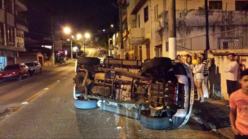 19/10/2013 Uma caminhonete bateu em um carro estacionado e capotou na noite desta sexta-feira (18) no centro de Joaçaba. O acidente ocorreu por volta das 23h30 na Avenida Santa Terezinha, nas proximidades da empresa LCL Eventos. Colisão envolveu uma caminhonete Mitsubishi Triton com placas MJP-4196 de Treze Tílias que atingiu a traseira e a lateral esquerda de um Gol com placas de Manoel Viana (RS) que estava estacionado. Devido ao forte impacto a caminhonete capotou e quase atingiu também um Ford Pampa que também estava estacionado no lado contrário da pista. O condutor da Mitsubishi, de iniciais G.J.B., de 59 anos, se recusou a fazer o teste do bafômetro. Diante disso ele foi preso em flagrante por embriaguez ao volante. Ele ainda resistiu à prisão e ofendeu os policiais militares na tentativa de intimidá-los. Em seguida fugiu do local do acidente e retornou mais tarde. Durante o atendimento da ocorrência o trânsito ficou congestionado nos dois sentidos. O Gol teve danos materiais consideráveis. O veículo pertence a um jovem de 18 anos.