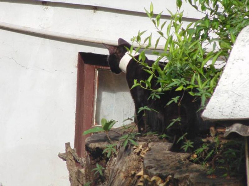 22/10/2013 Uma moradora da Rua Duque de Caxias, centro de Joaçaba, entrou em contato com a Rádio Catarinense pedindo ajuda para um gato que surgiu na propriedade dela com um pedaço de cano de PVC no pescoço. Preocupada com a integridade do animal, a moradora, de 61 anos, relatou que outros dois gatos apareceram no quintal da casa dela. Um deles está com uma pata machucada. A moradora ressalta que os felinos são ariscos e não deixam ninguém se aproximar. Ela lembra que recentemente tentou apanhar o gato com o pedaço de cano no pescoço para tirar o objeto, mas foi arranhada na reação do animal. A residência de nº 271 fica ao lado da ponte do Trabalhador, às margens do Rio do Tigre. Ela não sabe se o pedaço de cano foi colocado como uma espécie de coleira ou o objeto acabou ficando preso de maneira adversa. A moradora alimenta os gatos diariamente, mas está preocupada com a situação do gato ferido e o que está com o objeto no pescoço. Ela acredita que somente uma ação da Polícia Militar Ambiental, Corpo de Bombeiros ou de uma ONG pode resultar na captura dos felinos e no auxílio necessário.