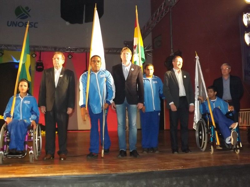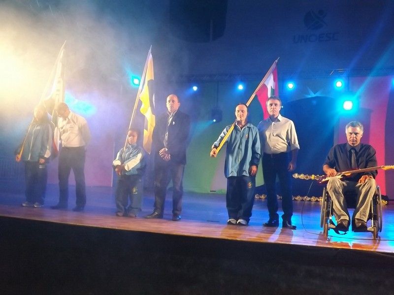 22/10/2013 A 9ª Edição dos PARAJASC (Jogos Abertos Paradesportivos de SC) foi aberta na noite desta terça-feira (22) durante cerimonial realizado no Centro de Eventos da UNOESC. A solenidade foi prestigiada por lideranças dos municípios de Joaçaba, Herval d’Oeste e Luzerna. O professor Edmar de Oliveira Pinto, que faleceu este ano, foi homenageado pela Comissão Central Organizadora pelo envolvimento e dedicação a este tipo de evento.