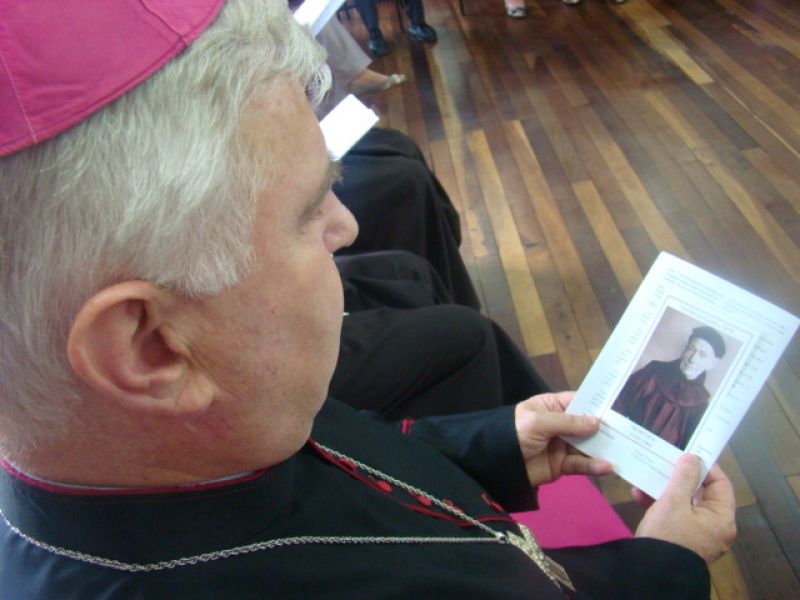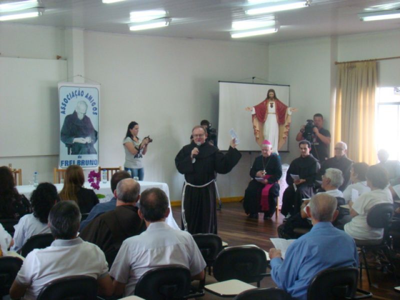 31/10/2013 O Bispo Diocesano de Joaçaba, Frei Dom Mário Marquez, instalou oficialmente o Tribunal Eclesiástico no processo de beatificação de Frei Bruno Linden. A cerimônia ocorreu na tarde desta quarta-feira (30) no auditório do pavilhão Frei Bruno, em anexo à Catedral Santa Teresinha em Joaçaba com aproximadamente 80 pessoas, entre religiosos, devotos e imprensa. Além do bispo estiveram presentes os ministro provincial da Província da Imaculada Conceição, Frei Fidêncio Vanboemmel e os vice-postuladores da Causa, Frei Estêvão Ottenbreit e Frei Alex Cianorski. O ato iniciou com um momento de oração, em seguida foram assinados três documentos redigidos em italiano e lidos na mesma língua pelo padre Paulo Ramos da Silva e que serão encaminhados a Roma. No evento também foram nomeados o integrantes do Tribunal: um delegado do bispo, padre Davi Lenor Ribeiro dos Santos, de Herval d' Oeste, um promotor de Justiça, padre Clair José Lovera, de Chapecó, a notária Michelle Selig e o notário Cláudio Orço, ambos de Xaxim. Também foi nomeada uma comissão histórica formada pelo Frei Clarêncio Neotti e Iraci Lopes. Todos prestaram juramento solene se comprometendo em atuar com determinação para a Causa. A comissão histórica ficará encarregada de recolher os documentos a serem enviados a Roma e a elaborar a biografia oficial de Frei Bruno. A intenção da Igreja é ter o livro pronto, com aproximadamente 300 páginas, até a romaria penitencial de Frei Bruno em 16 de março de 2014. Na instalação do Tribunal Eclesiástico foi determinada a primeira sessão para ouvir os cerca de 160 testemunhos. Será no dia 9 de dezembro, às 9h em Xaxim. Será interrogado Arnaldo Nardi. Dos 160 testemunhos, entre 30 e 40 serão apreciados em Roma, onde um postulador acompanhará de perto todo o processo até chegar à avaliação do Papa.