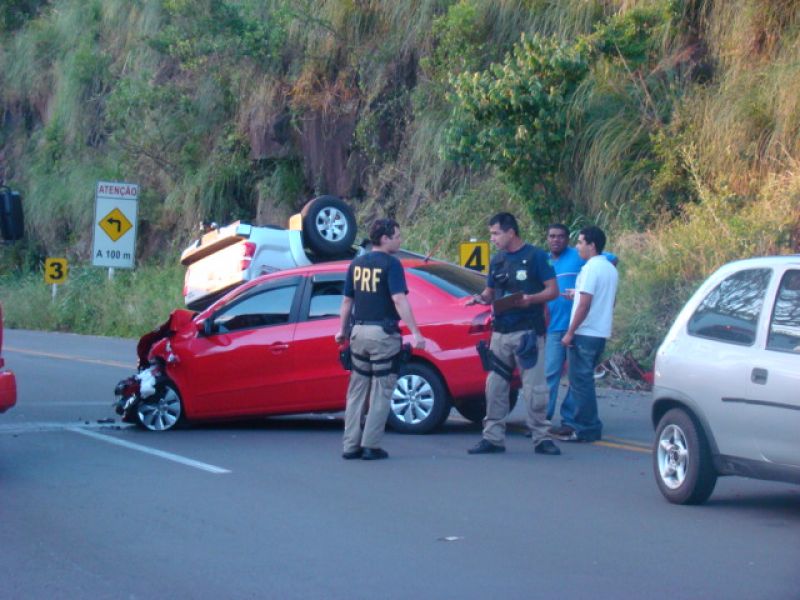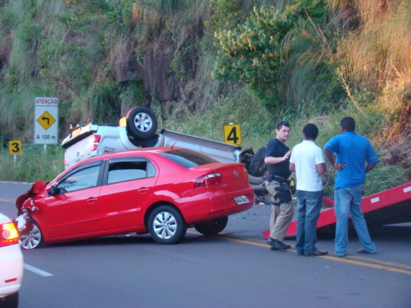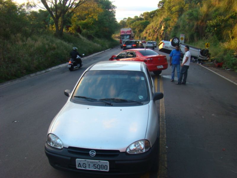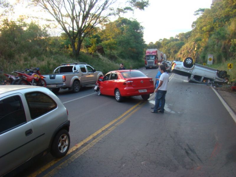 17/11/2013 Três veículos se envolveram em acidente na tarde deste domingo (17) na BR-282 em Herval d’ Oeste. A colisão ocorreu no km 365 por volta das 16h15 nas proximidades da Curva do Passat. Caminhonete Toyota Hillux placas de Xaxim (SC) fazia sentido Joaçaba quando colidiu de frente com o Voyage placas de Chapecó (SC). Atrás do Voyage seguia um Corsa com placas de Xanxerê (SC) que também foi atingido. Segundo as informações do motorista do Voayage, de 53 anos, uma carreta tentava fazer uma ultrapassagem forçada provocando o acidente. Com o impacto a caminhonete que era conduzida por um homem de 53 anos capotou. O Corsa que era dirigido por um homem de 59 anos foi atingido levemente. No Voyage estavam dois homens, na caminhonete quatro pessoas e no Corsa somente o motorista. Um casal que ocupava a caminhonete foi levado pelos bombeiros ao Hospital Universitário Santa Terezinha de Joaçaba com ferimentos na cabeça e nos braços. Os demais envolvidos não se feriram. O acidente deixou uma das pistas obstruída. A Polícia Rodoviária Federal fez a orientação do trânsito e o boletim de ocorrência.