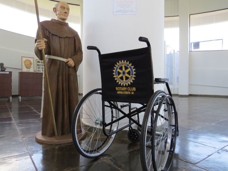 Pensando neste público a Câmara de Dirigentes Lojistas de Joaçaba (CDL) solicitou ao Rotary Club de Herval d’Oeste a doação de uma cadeira de rodas. A entidade, que presta uma importante função social, atendeu prontamente a solicitação. Nesta quinta-feira (28) o presidente Juarez Proner, acompanhado pelo diretor de imagem pública, Gilberto Teodoro da Silva, entregou a cadeira a Associação dos Amigos de Frei Bruno e a CDL. O ato foi acompanhado pelo presidente da CDL, Pablo Calluans, e por Valdecir José Sete, presidente da Associação. “Vai ser muito importante para nós, pois muitas pessoas que vem até aqui pediam uma cadeira e nós não tínhamos” destacou Alcione Weiss. A cadeira ficará a disposição dos interessados no Museu de Frei Bruno.