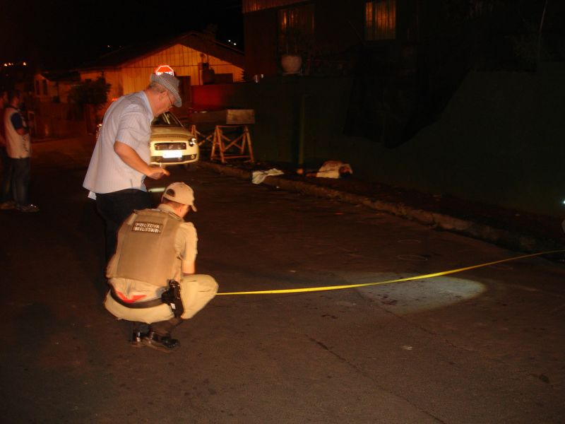 30/11/2013 Madrugada violenta no município de Herval d’Oeste. Um homem de 41 anos pode ter sido alvo de execução no bairro Vila Rica. O crime ocorreu na Travessa Joinville, próximo ao Colégio Eugênio Marcheti. A vítima, Roberto De Deus e Silva, 41 anos, foi alvejada com pelo menos dois disparos que atingiram a cabeça e o braço. No local populares informaram aos policiais que teriam ouvido 6 disparos e que teriam sido efetuados por um motoqueiro. Ainda não se tem pistas dos autores e nem a motivação do crime. O caso será investigado pela Polícia Civil.