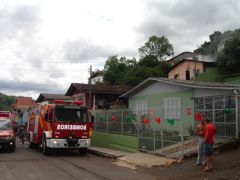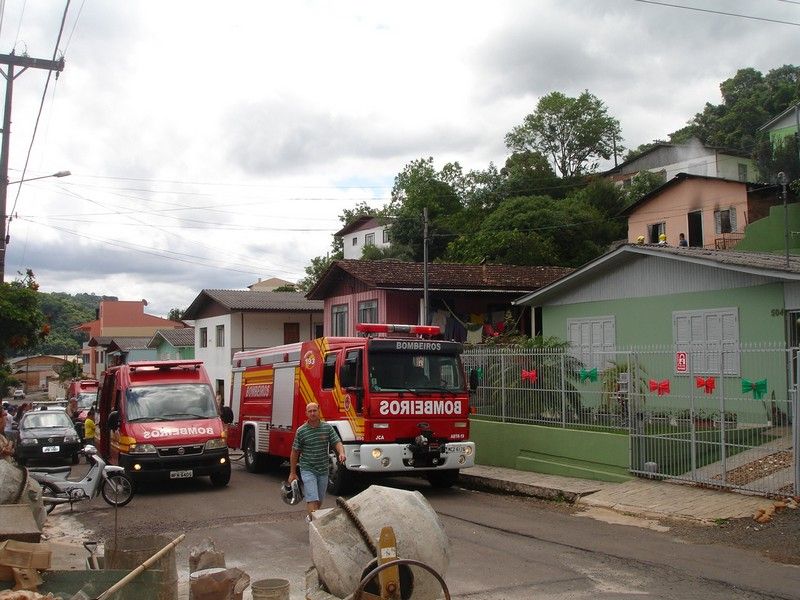 02/12/2013 Um incêndio de grandes proporções destruiu uma casa no início da tarde desta segunda-feira (02) no bairro Vila Rica em Herval d’Oeste. O acidente aconteceu por volta das 14h30 na rua Joinvile, número 482, próximo ao Ginásio Oscarzão. Vizinhos acionaram o Corpo de Bombeiros, mas quando as viaturas chegaram ao local as chamas já haviam tomado conta do imóvel. Os bombeiros fizeram o trabalho de rescaldo para evitar que o fogo atingisse residências vizinhas. De acordo com populares, uma mulher de 40 anos, que tem problemas mentais e que mora na casa com a mãe e mais um irmão, pode ter provocado o incêndio de forma acidental. Ela foi vista saindo as pressas da casa com algumas sacolas de roupa. O caso está sendo encaminhado a Polícia Civil. A família perdeu todos os móveis e objetos.