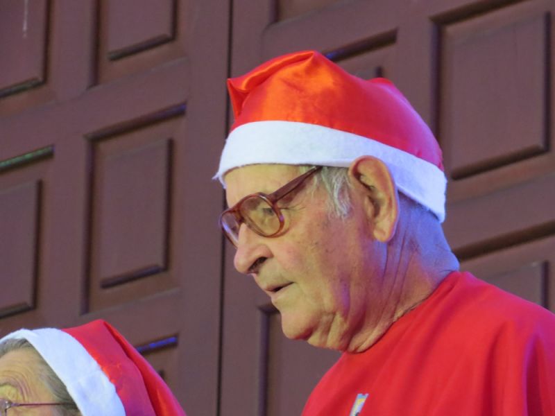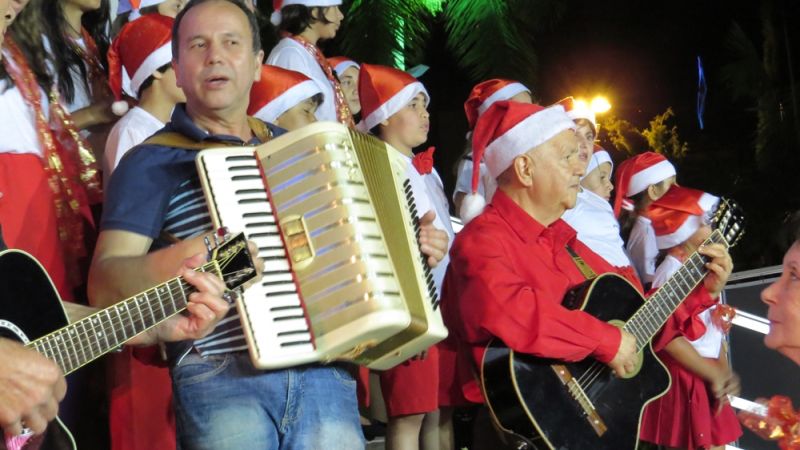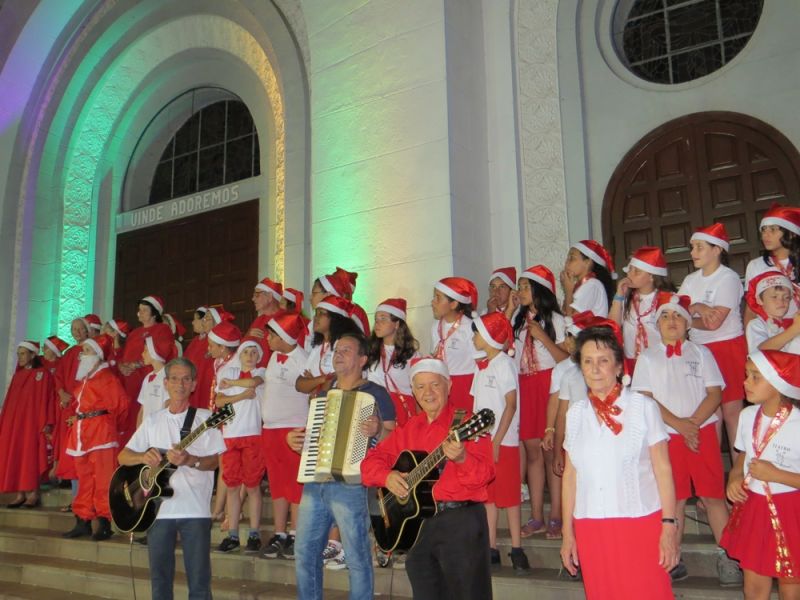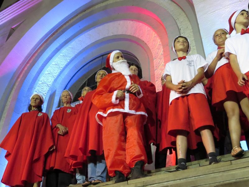 04/12/2013 Crianças com idade entre 5 e 13 anos que cantam e encantam por onde passam. Meninos e meninas que são responsáveis por manter a viva a tradição e pulverizar pela cidade o verdadeiro espírito de Natal, criando um clima especial para a chegada do Papai Noel. Este é o Coral da Scajho de Joaçaba, coordenado pela professora Leda Kérber, uma voluntária e apaixonado pelo projeto que é mantido no município desde 1994. Os integrantes do Coral se reúnem duas a três vezes por semana para ensaiar cantos pátrio, folclóricos, populares e ainda receber aula de moral e cívica. Até o final de dezembro estão programadas mais de 200 apresentações em lojas, empresas e residências. O detalhe é que o projeto é gratuito. “Não tem sentido nós cobrar, pois o maior importante é repassarmos a mensagem de Natal para as famílias, empresas, trabalhadores...”. Questionada pela reportagem da Rádio Catarinense como o Coral é mantido, Leda respondeu: “Não peço apoio de órgãos públicos, sobrevivemos com alguns valores repassados por algumas pessoas e do meu próprio salário”. Também faz parte do grupo pessoas da Melhor Idade. Durante o mês de Dezembro é comum encontrar o Coral circulando pela cidade com o traje típico do Papai Noel.