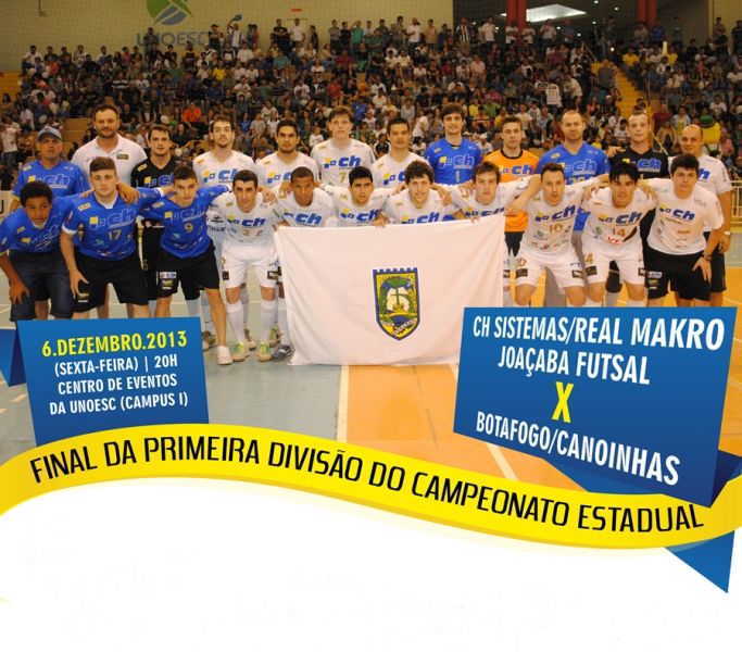 05/12/2013 Vai começar a disputa pelo título da Primeira Divisão do Campeonato Estadual. Nesta sexta-feira (6), às 20h, no Centro de Eventos da Unoesc (campus I), o CH Sistemas/Real Makro Joaçaba Futsal recebe o Botafogo/Canoinhas para o jogo de ida. A expectativa é de casa cheia.
