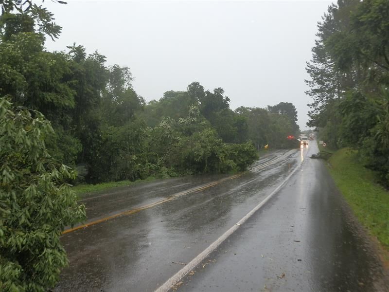 Em Joaçaba o vento derrubou várias árvores na região de Nova Petrópolis. O trânsito, no acesso a Jaborá, ficou interditado em meia pista por mais de uma hora, até que os troncos das árvores fossem removidos.
