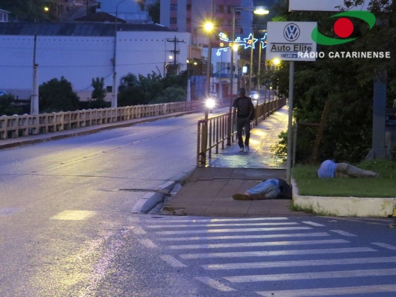 10/12/2013 Uma cena inusitada foi registrada na manhã desta terça-feira (10) na ponte entre os municípios de Capinzal e Ouro. Um ouvinte da Rádio Catarinense, que passava pelo local, flagrou dois homens em sono profundo, possivelmente depois de uma noitada, regada por muita bebida. Mesmo com a chuva e com o barulho de pedestres e carros, a dupla não se incomodava e permanecia unida.
