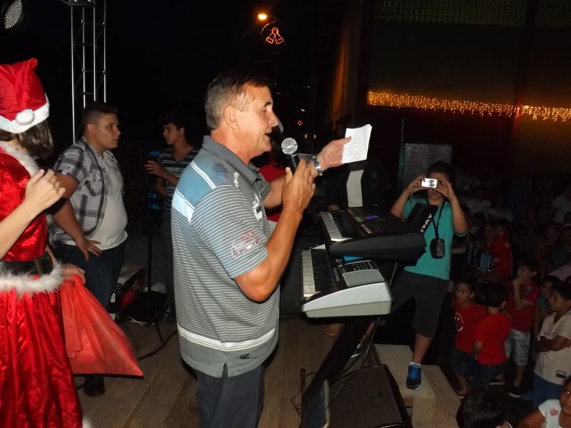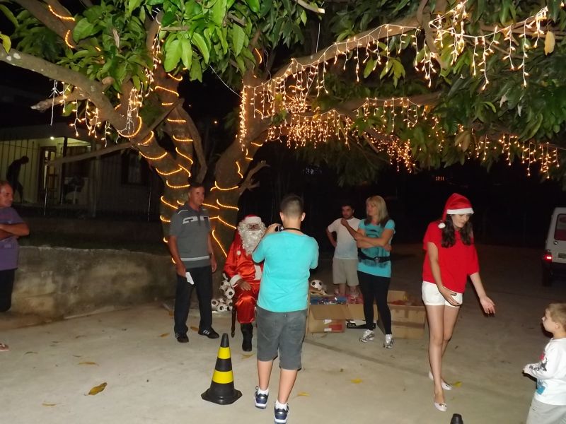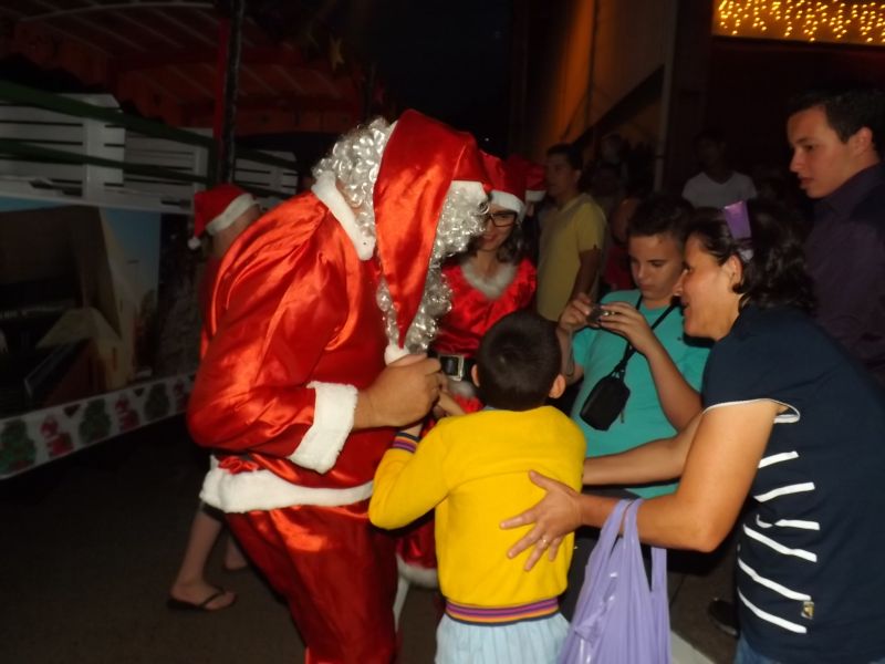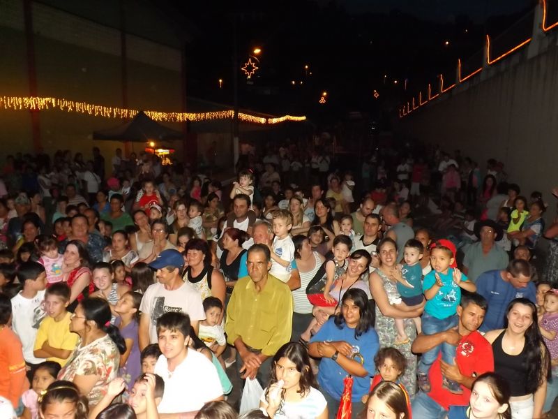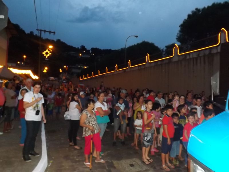 14/12/2013 Foi realizado na noite desta sexta-feira (13) o acendimento da iluminação natalina no bairro Santa Tereza. A programação fez parte do projeto Natal Iluminado do Santa Tereza, promovido pela Associação de Moradores. Segundo o presidente da entidade, Irineu Parolin, cerca de 400 crianças presentes ao evento para receber presente do Papai Noel. É o terceiro ano que o projeto é desenvolvido. O evento desta sexta contou com a presença do prefeito Rafael Laske. O trenzinho do Papai Noel, que circulou pelo Centro da cidade, não pode chegar até o bairro devido ao percurso com obstáculos. Parolin agradece o apoio de empresas que ajudam a patrocinar o projeto. Durante a festividade, foi exibido o troféu de campeão dos jogos de integração – Interbairros – conquistado pelo bairro Santa Tereza. Para a terceira edição do projeto Natal Iluminado do Santa Tereza foram investidos R$ 9,8 mil.