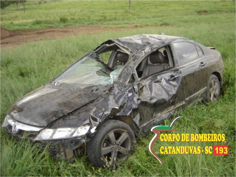 21/12/2013 Um carro capotou na tarde desta sexta-feira (20) em Catanduvas. O acidente ocorreu por volta das 15h45 na comunidade de Linha Pedra Lisa. Um Honda Civic com placas de Balneário Camboriú (SC) saiu da pista e capotou. O Corpo de Bombeiros deslocou ambulância para socorrer as vítimas. Os quatro ocupantes estavam fora do carro. Dois sofreram ferimentos, o condutor de 33 anos e um jovem de 18 anos. O motorista teve escoriações no braço esquerdo e o jovem um corte no joelho esquerdo. Os dois foram conduzidos ao Hospital Universitário Santa Terezinha de Joaçaba. Os danos materiais no carro foram de grande monta. A Polícia Militar também esteve no local para fazer o registro da ocorrência.