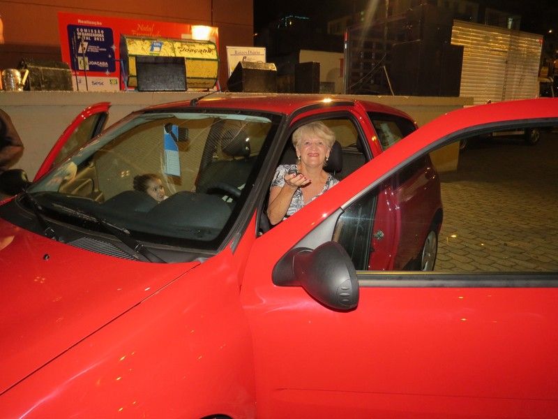 Por volta das 21:30h o cupom mais aguardado do ano, que estava dentro de uma grande urna, surgiu das mãos do presidente da CDL, Pablo Caluans. Na praça os olhares atentos ao palco e em casa os ouvidos colados no rádio aguardavam apenas a pronúncia do nome do vencedor. Depois de 3 cupons invalidados por não preenchimento dos dados corretamente, e sem muitas formalidades, Calluans foi logo revelando o nome: “A vencedora comprou na loja Real Makro no dia 10/12 e é moradora de Herval d’Oeste: Lourdes Botega”. A diretoria da CDL manteve contato com a felizarda que mora na rua Senador Euzébio que estava em casa em companhia de sobrinhos que vierem de Florianópolis. Após ficar sabendo que havia sido sorteada ela ainda mostrou-se calma com a situação. “Só vou tomar um banho e já estou chegando por ai” disse dona Lourdes. Na praça ela recebeu as chaves do carro e revelou estar emocionada com o prêmio. Ela é aposentada, tem 66 anos, não tinha carro e havia efetuada uma compra de R$ 445,00. Ela estava concorrendo com apenas dois cupons no meio de cerca de 1 milhão.