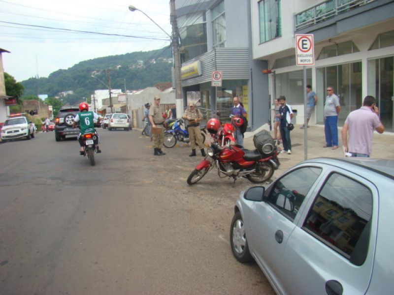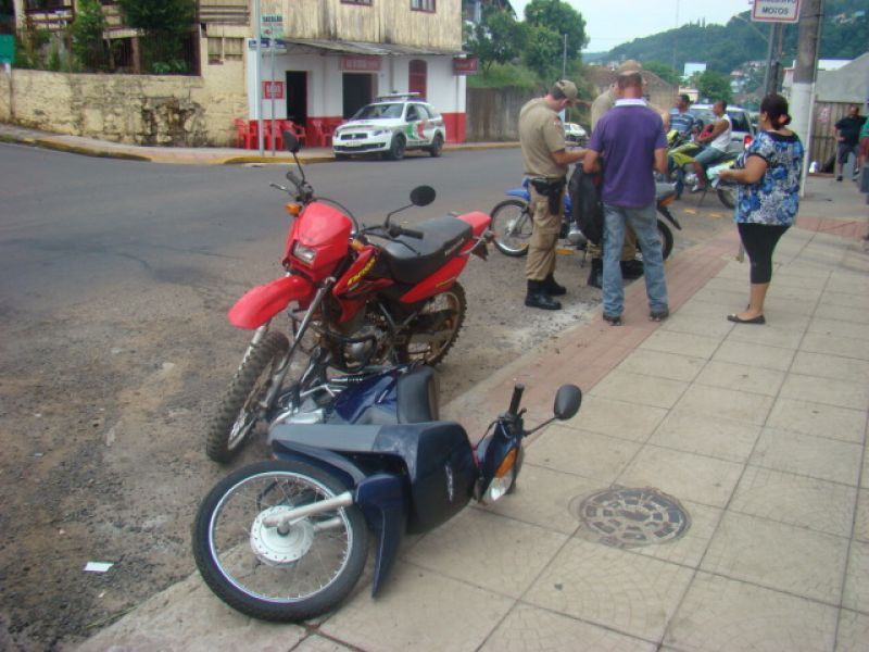 27/12/2013 Um motorista sem habilitação provocou acidente com cinco veículos na manhã desta sexta-feira (27) no Centro de Herval d’ Oeste, por volta das 11h30. O acidente ocorreu na rua Santos Dumont, em frente à agência do Banco do Brasil. Segundo informações de populares, Fiat Uno placas de Joaçaba, conduzido por Sidnei Antunes, de 32 anos, descia a rua Marechal Deodoro quando o veículo teria perdido o freio e atingido duas motos (com placas de Herval d’ Oeste) e dois carros (um Celta com placa de Herval d’ Oeste e uma Spacefox de Joaçaba) que estavam estacionados. O Uno parou somente a cerca de 300 metros do local da batida. O motorista teria alegado a falta de freio. A PM confirmou que ele não é habilitado. Antunes reside no bairro Nossa Senhora Aparecida em Herval d’ Oeste e trabalha na construção civil. Os danos materiais foram de grande monta, principalmente no Celta que teve a coluna frontal danificada. Ninguém se feriu. A Polícia Militar esteve no local, fez o levantamento e conduziu o motorista à delegacia de Polícia de Herval d’ Oeste. O Uno foi guinchado.