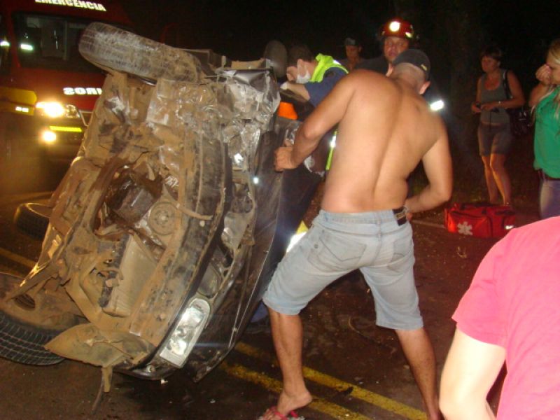 28/12/2013 Uma mulher de 31 anos ficou presa nas ferragens após capotagem no acesso Egídio Pozzobom em Herval d’ Oeste. O acidente ocorreu por volta das 2h deste sábado (28) nas proximidades de uma marmoraria. Eva Nunes conduzia um VW/Gol placas MAT-6052 de Herval d’ Oeste. O veículo fazia sentido Centro quando, segundo informações de testemunhas, rodou na pista, subiu um barranco e capotou em uma curva. Somente a condutora estava no carro. A vítima ficou presa nas ferragens e foi retirada pelo Corpo de Bombeiros. Durante o resgate, o carro precisou ser escorado com hastes metálicas e a pista ficou completamente interditada. Havia risco de incêndio, uma vez que do veículo vazava combustível e óleo lubrificante. A mulher reclamava de dores pelo corpo e apresentava sangramento na boca. Ela foi ainda imobilizada e levada ao Hospital Universitário Santa Terezinha em Joaçaba. Também foi necessária a limpeza da pista que estava coberta de óleo e estilhaços de vidro.