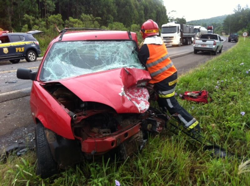 03/01/2014 Técnicos do Instituto Médico Legal (IML) de Joaçaba salvaram um bebê envolvido em um grave acidente de trânsito na manhã desta sexta-feira (03) na BR-153 em Concórdia. Colisão frontal, por volta das 7h15, entre uma Ford/Courier e um Onix deixou os ocupantes presos nas ferragens. Segundo informações de testemunhas, quatro pessoas estavam no Onix, o motorista que ficou preso nas ferragens, uma mulher e duas crianças, sendo um bebê. O Corpo de Bombeiros Voluntários de Concórdia foi acionado para atender a ocorrência e resgatar as vítimas encarceradas. A Ford/Courier com placas de Concórdia era conduzido por Andrei Fochesatto. De acordo com as informações, pelo menos cinco pessoas ficaram feridas. A colisão ocorreu no acesso a Linha Pinhal, na região de São José. De acordo com as informações do policial da PRF, Jean Brehm, um bebê foi encaminhado ao Hospital São Francisco por técnicos do IML de Joaçaba que se deslocavam para Concórdia. A cadeirinha teria de soltado do banco traseiro. Uma mulher e outra criança de aproximadamente oito anos também ficaram feridas. O Onix tem placas de Sapucaia do Sul/RS. Conforme os bombeiros, a rápida ação dos técnicos do IML de Joaçaba foi fundamental para o socorro do bebê.