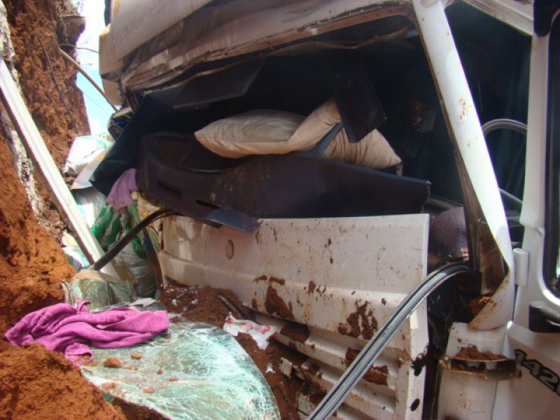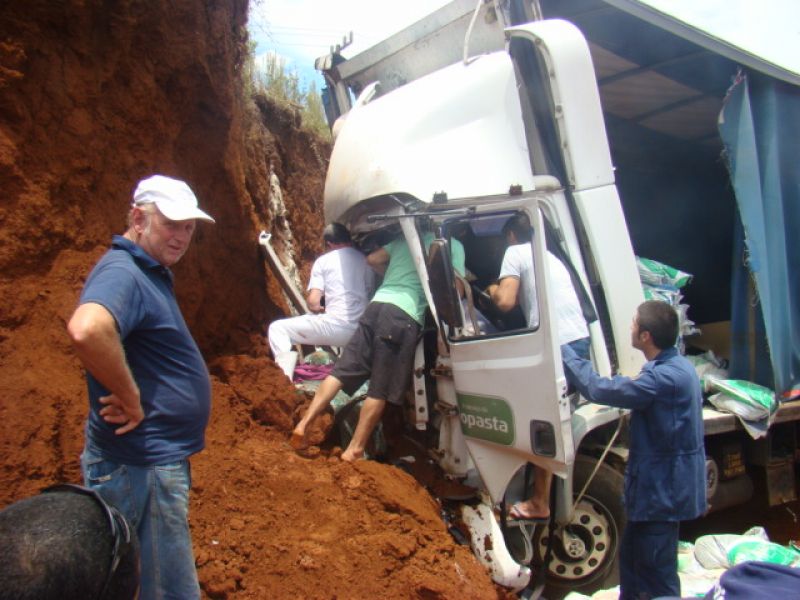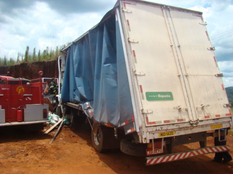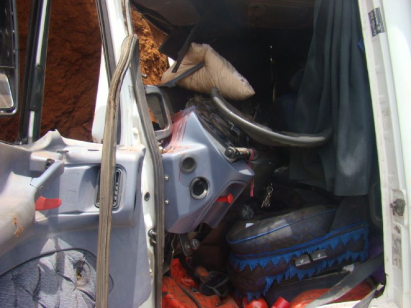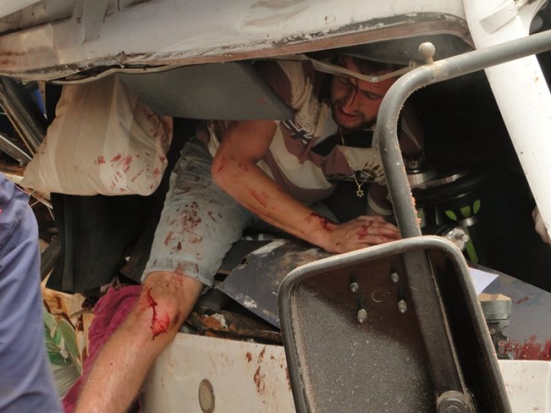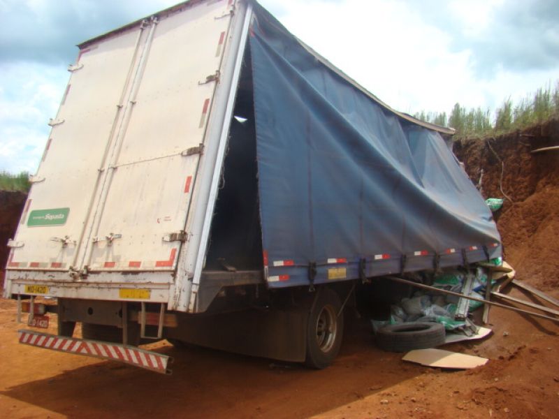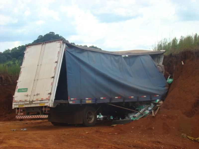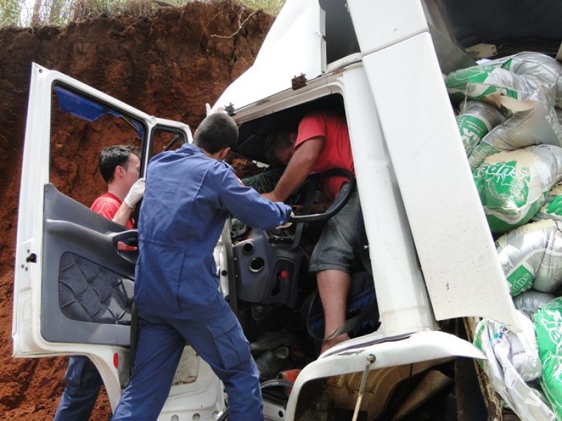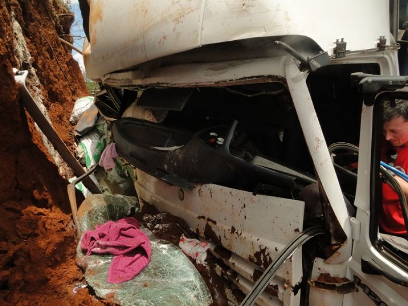 22/01/2014 Dois homens que estavam em um caminhão sobreviveram milagrosamente após colidirem violentamente o veículo contra um barranco. O acidente ocorreu por volta das 13h15 desta quarta-feira (22) na SC-452 em Água Doce, em frente ao frigorífico Dri, distante 1 km do trevo de acesso a Catanduvas. Rosemir Tibes Vieira, de 37 anos, conduzia um caminhão com placas de Videira da empresa Sopasta. Ele tinha na carona Cristiano Araújo, de 25 anos. Vieira transportava ração para suínos. Ele saiu de Chapecó e se dirigia a Tangará. Próximo ao trevo de acesso a Água Doce, o veículo ficou sem freios. Desgovernado ele saiu da pista e invadiu uma terraplanagem em alta velocidade até se chocar violentamente contra um barranco. Funcionários que trabalhavam no local presenciaram a batida. Fábio Viecelli, funcionário do frigorífico Dri, relatou a Rádio Catarinense que ouviu os dois ocupantes gritando incessantemente antes da colisão. O impacto da colisão destruiu a cabine do caminhão. Vieira e Araújo ficaram presos nas ferragens. O Corpo de Bombeiros de Água Doce foi acionado e removeu as vítimas, que milagrosamente sobreviveram. Eles tiveram apenas ferimentos leves, foram conduzidos ao hospital municipal de Água Doce sem suspeita de fraturas. Os próprios bombeiros ficaram impressionados com a situação. Uma escavadeira que trabalhava no local ajudou a remover a cabine que ficou prensada no barranco. Rodrigo Dri, sócio-proprietário do estabelecimento, disse que a empresa está fazendo a limpeza do terreno à beira da rodovia para ampliar o estacionamento.