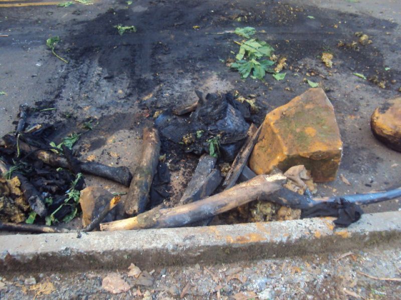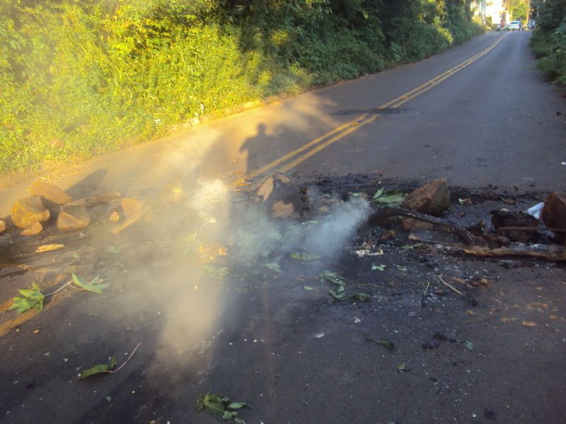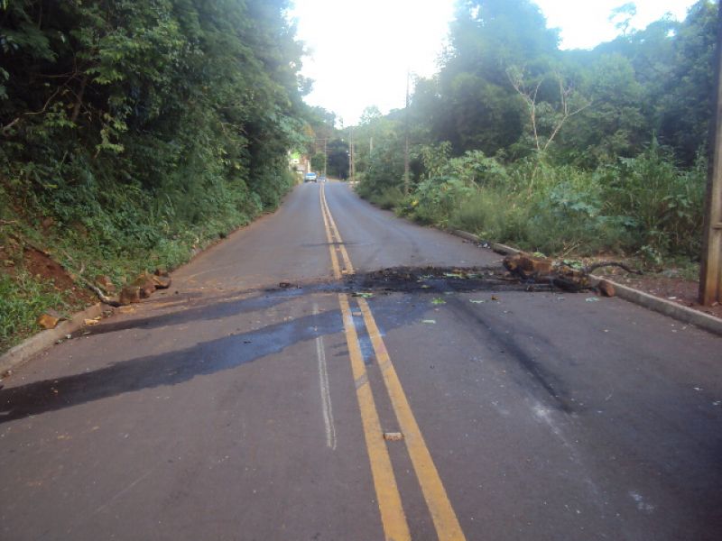 28/01/2014 Uma rua foi obstruída por vândalos na noite desta segunda-feira (27) em Herval d' Oeste. O fato ocorreu por volta das 19h30 na rua São Paulo, bairro Vila Rica. Os vândalos fizeram barreira com pedras e colocaram fogo em colchão e madeira. A Polícia Militar foi chamada e constatou no local que os vândalos haviam furtado madeira e latões do pátio da residência de um homem de 59 anos e juntado com o restante dos materiais para bloquear a rua e começar o fogo.