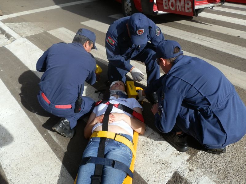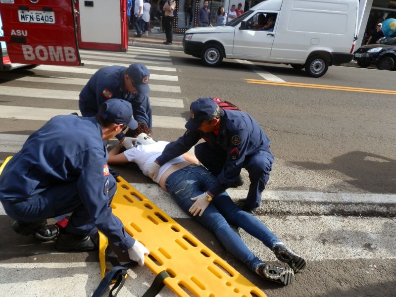 09/04/2012 Uma mulher foi atropelada na faixa de pedestre na manhã desta segunda-feira (09) no centro de Joaçaba. O fato aconteceu por volta das 09h na avenida XV de Novembro. O atropelamento envolveu o Ford Ka placas MCB-2540 de Joaçaba, conduzido por C.G.P. A vítima, de iniciais J.M., 41 anos, foi atendida pelos bombeiros e conduzida ao Hospital Universitário Santa Terezinha para avaliação médica. Ela apresentava corte na cabeça, rosto e suspeita de lesão na coluna.