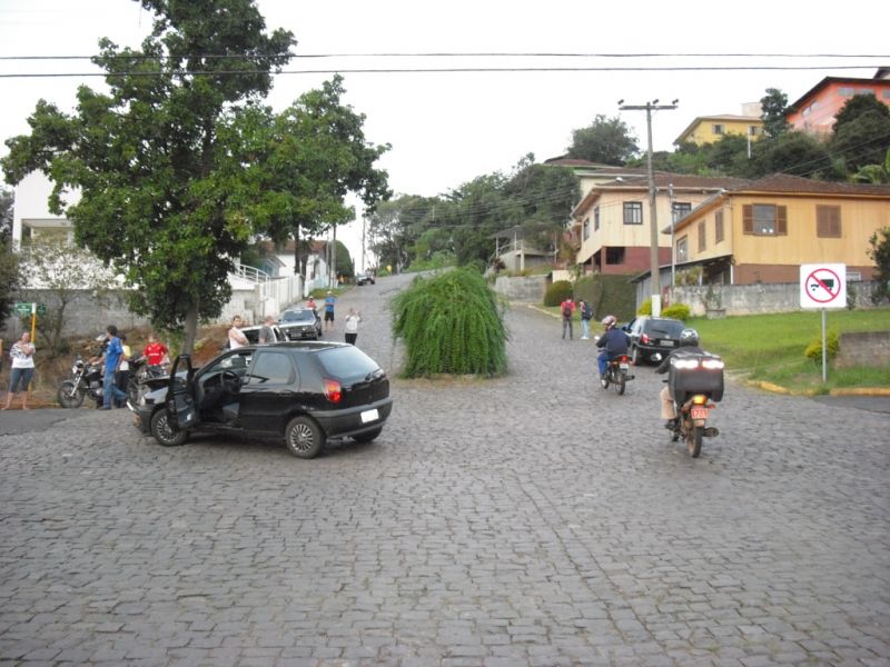 10/04/2012 O acidente foi registrado por volta das 17h30min desta segunda-feira (09) na rua Dário Fontana na esquina com a rua Carlos Dreyer na área central da cidade. De acordo com a Polícia Militar, a moto CG-125, placas de Luzerna, conduzida por Valdecir Botcher, 29 anos, colidiu de frente com o Fiat Pálio, placas LZA-0795 de Ibicaré, conduzido por um homem de iniciais J.D., 60 anos, que também reside em Luzerna.