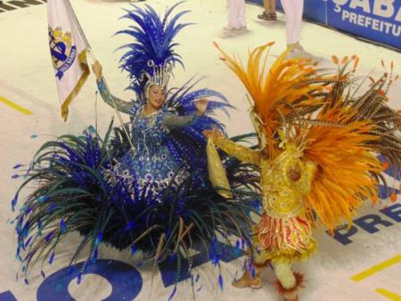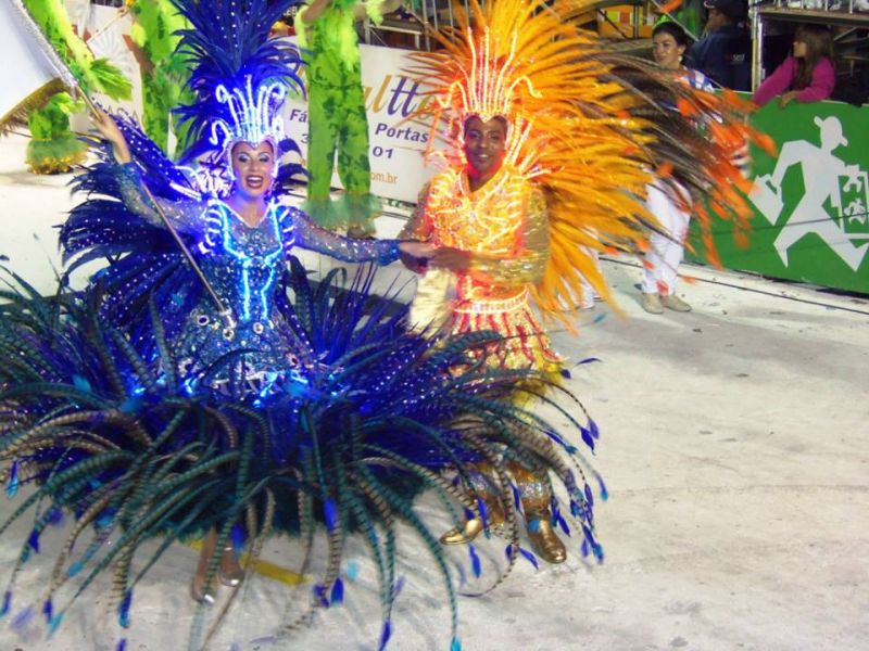 02/03/2014 A comissão de frente da azul e branco inovou. Tradicionalmente composta por homens, nesse ano se tornou mista e na vestimenta destaque para artefatos de led. O mesmo detalhe foi usado na fantasia do primeiro casal de mestre-sala e porta-bandeira Analiê Pasquali e Vladimir Vieira.