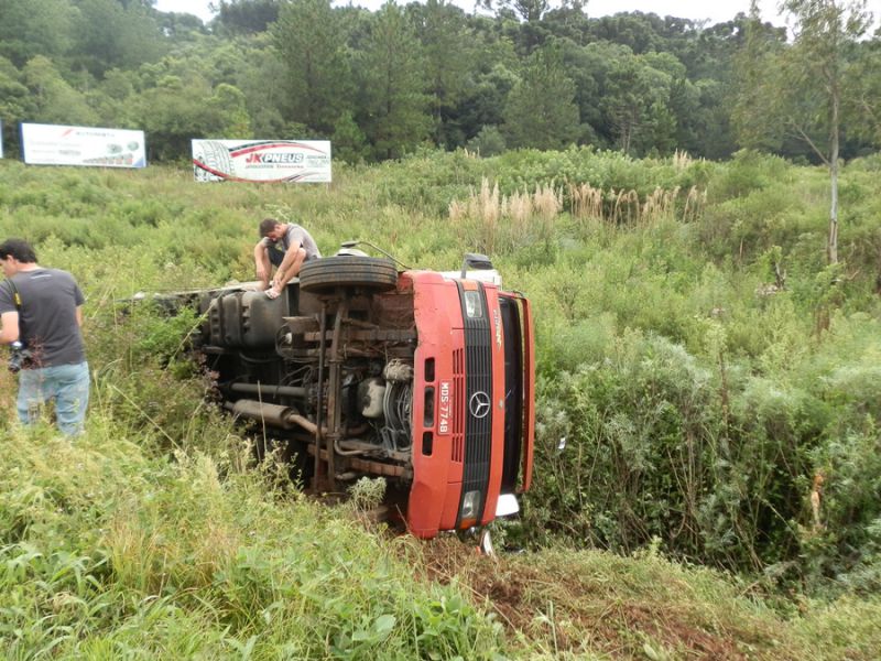 11/03/2014 Um caminhão com placas de Palhoça (SC) tombou na BR-282 em Joaçaba. O acidente aconteceu na tarde desta terça-feira (11) por volta das 15h próximo ao Centro de Promoções (CPJ). O motorista Sérgio Schmidt, 26 anos, relatou a Rádio Catarinense que perdeu o controle do veículo numa curva. Ele e mais o carona, de 20 anos, sofreram apenas ferimentos leves. O caminhão deslocava-se no sentido Chapecó a Florianópolis e estava vazio.