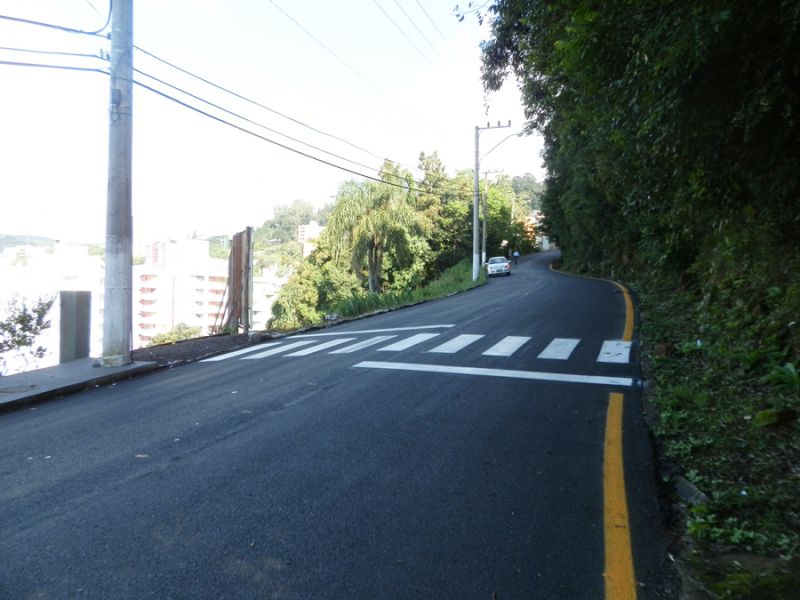 12/03/2014 A rua Sete de Setembro em Joaçaba recebeu uma nova camada de asfalto em razão do pavimento anterior ter sido danificado pela implantação da rede de esgoto do SIMAE. Mas a via, um dos principais acessos ao Campus II da Unoesc, no bairro Flor da Serra, continua no centro das polêmicas. A Central de Jornalismo da Rádio Catarinense foi procurada por motoristas que passam diariamente pelo local e que estão achando no mínimo curioso o local escolhido para implantação da faixa de segurança para pedestres. A faixa foi colocada num local que não existe acostamento e calçadas, onde os pedestres são obrigados a transitar pela pista de rolamento, dividindo espaço com os veículos. Ou seja, no entendimento destes motoristas, não haveria necessidade da faixa, já que também não existe calçadas nesta via. Houve uma preocupação com os veículos e não com os pedestres.
