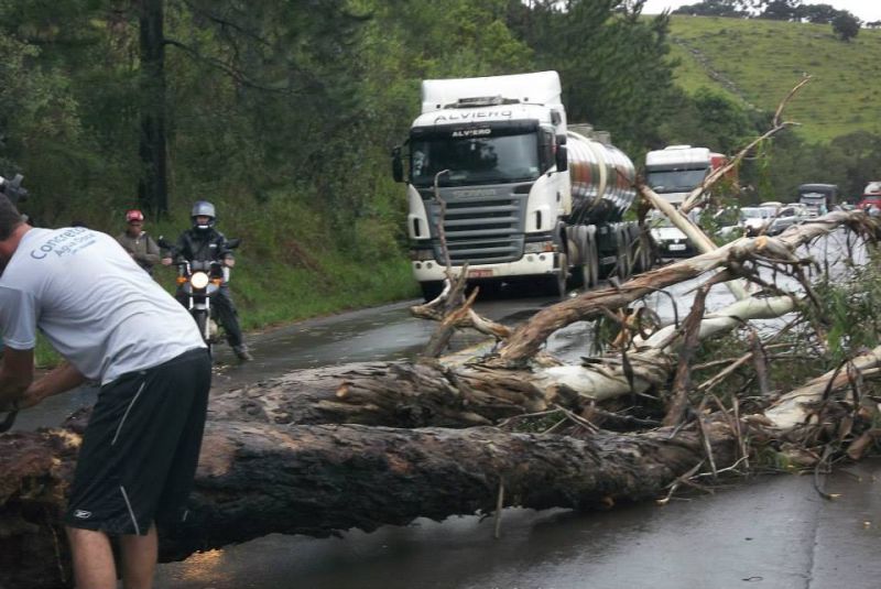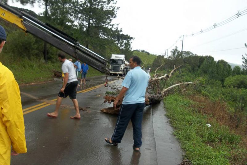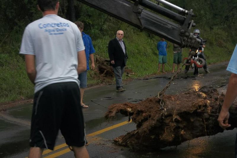 12/03/2014 Um eucalipto de 20 metros provocou um grande transtorno para os usuários da SC-452 na tarde desta quarta-feira (12) em Água Doce. A árvore caiu na pista por volta das 15h entre o trevo de acesso a Catanduvas e o centro da cidade provocando engarrafamentos de mais de um quilômetro nos dois sentidos da rodovia. O Corpo de Bombeiros foi acionado e precisou do auxílio de um Guincho para remover o eucalipto da pista. O trabalho durou cerca de meia hora e foi dificultado pela chuva. No momento da queda nenhum veículo foi atingido. O Sargento Eclair Rogério da Silva alerta os motoristas que transitam pela rodovia, pois há pouco tempo houve uma queda de barreira próximo à empresa Baterias Pioneiro.