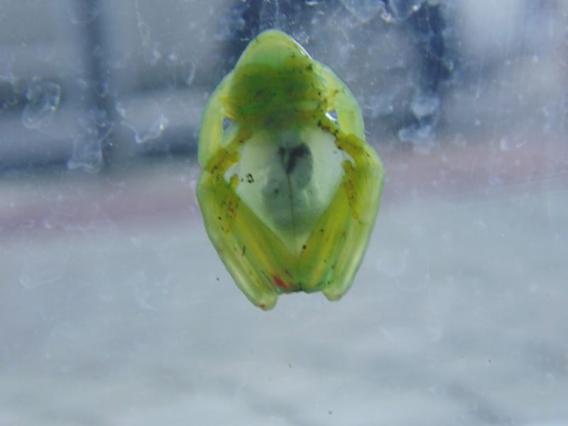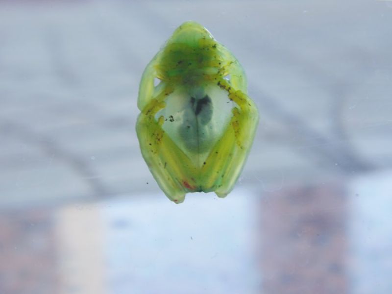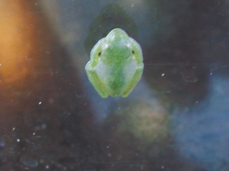 21/03/2014 A reportagem da Rádio Catarinense foi chamada na tarde desta sexta-feira (21) para registrar o aparecimento de uma perereca da espécie hyalinobatrachium uranoscopum, mais conhecida como 'Perereca de vidro'. O anfíbio estava na vitrine de uma loja de roupas localizada na avenida Santa Terezinha, Centro de Joaçaba. Fotos do animal foram encaminhadas à Polícia Militar Ambiental de Herval d' Oeste que confirmou se tratar da espécie. Biólogo consultado pela reportagem também afirmou se tratar da “Perereca de vidro', uma espécie de sapo na família Centrolenidae. É encontrado na Argentina e no Brasil. Ocorre desde o Espírito Santo até o norte do Rio Grande do Sul respeitando os limites da Mata Atlântica. O anfíbio chamou a atenção dos proprietários e dos clientes que visitavam a loja, se tornando uma espécie de atrativo aos produtos expostos. Ele foi devolvido à natureza. Segundo o comandante da Polícia Ambiental, tenente Tatiano Cabral, mesmo havendo pouco registro do aparecimento da espécie, a “Perereca de vidro' não é incomum na região. Seu nome popular é devido à transparência da pele que permite ver seus órgãos. Vivem em grupos de até cinco indivíduos e os machos vocalizam a noite sobre folhas de vegetação marginal de pequenos arroios, colocam 20 a 30 ovos com duração de 48 a 72 horas para eclodirem, suas larvas são encontradas em folhas e detritos do leito de arroios, e tem pouca resistência à poluição, assim como todos os anfíbios.