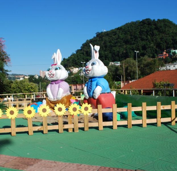 Quem passar pela praça já vai poder observar os dois coelhos da CDL – agora restaurados – e outros elementos alusivos à data. A ideia, segundo Marines Aparecida Gonçalves – diretora da Casa da Cultura, é que as pessoas visitem a praça com as crianças e usufruam do local para tirar fotos. Além disso, o local será palco no sábado, dia 19, de uma extensa programação que inicia às 15 horas e se estende até o final do dia.