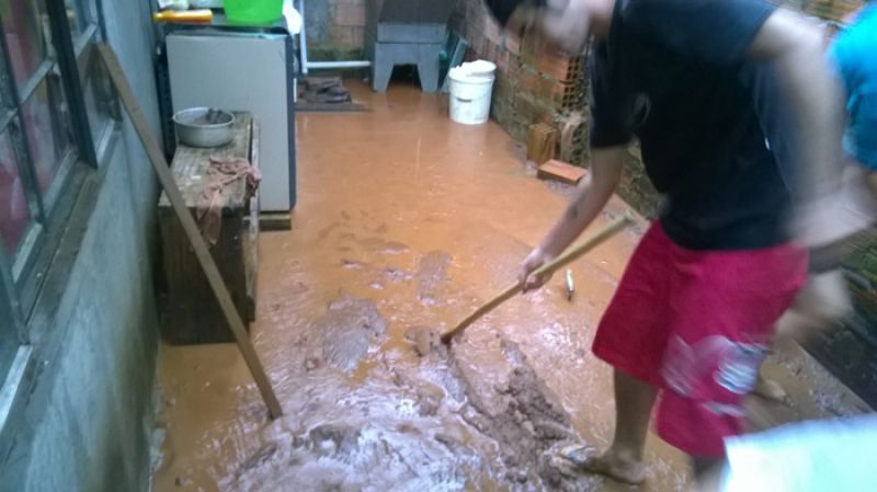 12/04/2014 A chuva torrencial causou transtorno a uma moradora de Joaçaba na manhã deste sábado (12). O entupimento de um bueiro de uma obra na rua Alexandre Henrique Mergener, bairro Jardim Lindoia, fez com que a água invadisse a residência de Adélia Couto, 40 anos. A reportagem da Rádio Catarinense esteve no local e constatou que a obra fica acima da residência invadida pela água. Funcionários da prefeitura e Corpo de Bombeiros prestaram auxílio. Vizinhos também ajudaram na retirada dos móveis e eletrodomésticos e na limpeza do imóvel. Além da água a lama também ficou acumulada. A secretaria de Infraestrutura providenciou a abertura de uma vala para escoamento da água. Um representante da empresa que constrói o prédio que teria causado o transtorno se comprometeu em fazer os trabalhos necessários para evitar que o problema ocorra novamente.