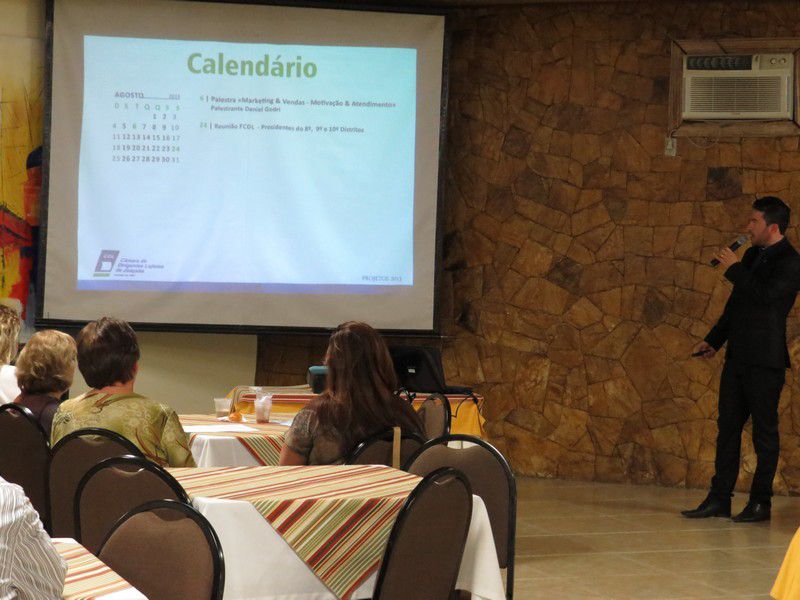17/04/2014 A Câmara de Dirigentes Lojistas de Joaçaba (CDL) realizou na noite de quarta-feira (16) mais uma assembleia com os associados para debater assuntos importantes relacionados ao comércio varejista. A assembleia, convocada através de edital, foi realizada no restaurante do Hotel Jaraguá. Na abertura dos trabalhos o presidente Pablo Calluans apresentou aos lojistas os projetos e ações que foram desenvolvidos em 2013, como por exemplo o Mulheres em Foco, a implantação do Portal da Transparência, do Observatório Espacial Frei Bruno, palestras, Dias D, promoções e outras atividades buscando o fortalecimento da entidade e dos seus associados.