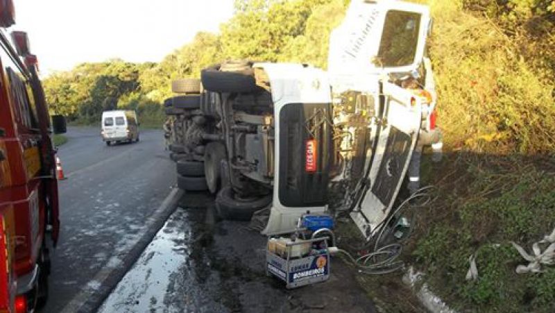 02/05/2014 O tombamento de um caminhão na tarde desta quinta-feira (1º) tirou a vida de um homem em Água Doce. O acidente ocorreu por volta das 16h30 no km 32 da BR-153. Caminhão Volkswagen Constellation com placas de Diadema (SP) carregado de produtos químicos (fertilizantes) seguia em direção ao Rio Grande do Sul. O condutor José Domingos de Oliveira, 59 anos, morreu preso às ferragens. O Corpo de Bombeiros de Água Doce retirou a vítima da cabine. Os bombeiros voluntários de Irani também foram ao local. A Polícia Rodoviária Federal de Água Doce registrou a ocorrência.