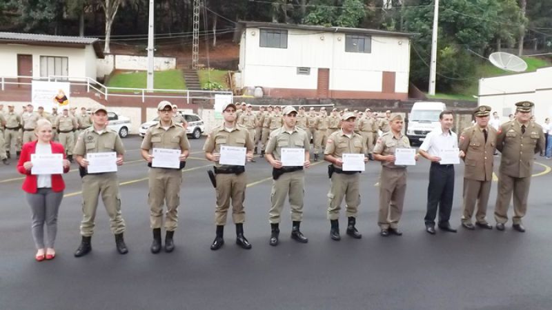 A solenidade teve como anfitriões o tenente-coronel Luiz Roberto Müller (comandante de 26º BPM de Herval d' Oeste) e o tenente-coronel Nilson Carlos de Oliveira (chefe do Estado-Maior da 10ª RPM)