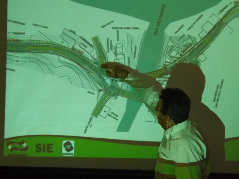 15/05/2014 Um abaixo-assinado com mais de 500 assinaturas fez o governo do estado reavaliar o projeto para revitalização da SC-453 no que diz respeito à travessia urbana de Ibicaré. Na tarde desta quinta-feira (15) representantes do Deinfra e da empresa Sotepa estiveram reunidos na Câmara de Vereadores com o prefeito Ari Ferrari, vereadores, empresários e comerciantes do município para discutir a possível construção de um viaduto no local. O projeto original prevê uma segunda ponte ao lado da já existente, na saída para Tangará.