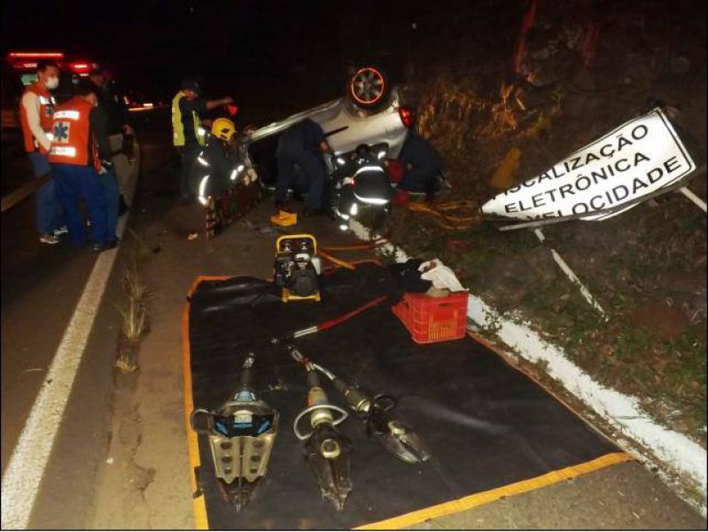 17/05/2014 Por volta das 23h45 uma capotagem envolvendo um Corsa com placas de Herval d’ Oeste deixou cinco pessoas feridas. Quatro eram mulheres, incluindo uma gestante. Segundo informações, o veículo fazia sentido Catanduvas/Campos Novos quando em uma curva no km 382, próximo ao trevo do Chocodinho, a condutora de nome Alessandra perdeu o controle da direção. Antes de capotar o carro derrubou uma placa de sinalização e colidiu em um paredão de pedras. Uma viatura do Corpo de Bombeiros de Catanduvas que havia levado paciente ao Hospital Universitário Santa Terezinha (HUST) se deslocava para a cidade de origem e estava nas proximidades do trevo já que o acesso Adolfo Zigueli está interditado para obras. Uma vítima foi levada por eles ao HUST. Logo em seguida chegou uma viatura da Polícia Militar. Conforme o sargento Luiz Antônio Trindade, duas mulheres estavam fora do carro e as demais dentro. As vítimas sofreram escoriações e sofreram diversas pancadas pelo corpo. Em seguida chegaram as demais viaturas do Corpo de Bombeiros de Joaçaba. O trânsito ficou em meia pista. A Polícia Rodoviária Federal fez o levantamento das informações para apurar as causas do acidente.
