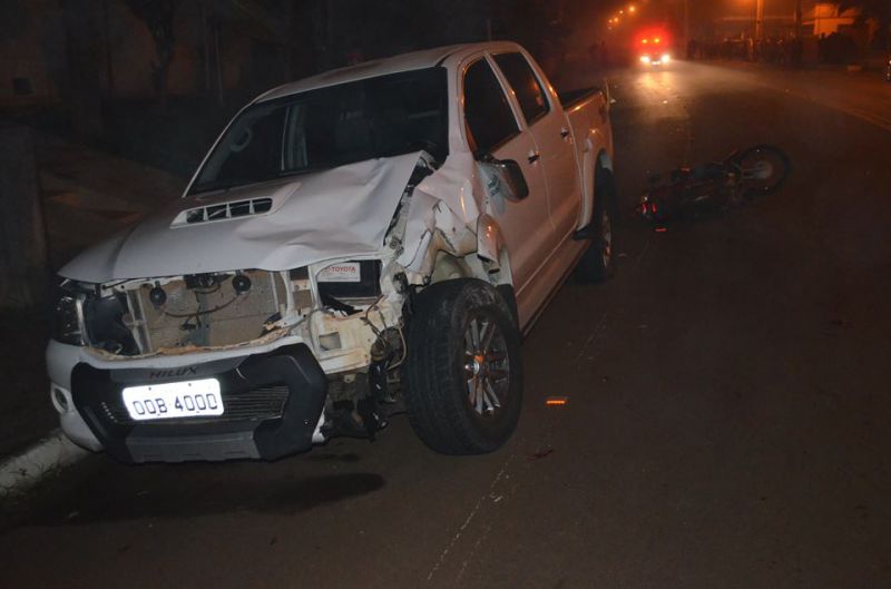 17/05/2014 O acidente foi registrado na noite desta sexta feira (16) por volta das 22 horas em frente a Unidade Básica de Saúde do Parque Jardim Ouro. Envolvendo uma Toyota Hilux placas de Mineiros/GO e uma moto Honda Biz placa de Capinzal, pilotada por Juarez Pereira dos Santos (34), que tinha como carona Maria Isadora Pereira dos Santos (03) ambos que tiveram graves ferimentos e logo após atendimento no Hospital Nossa Senhora das Dores de Capinzal tiveram que ser transferidos pelo SAMU para o Hospital Universitário Santa Terezinha de Joaçaba. Na motocicleta ainda estava Marilene Ramos (37) que não resistiu aos ferimentos.
